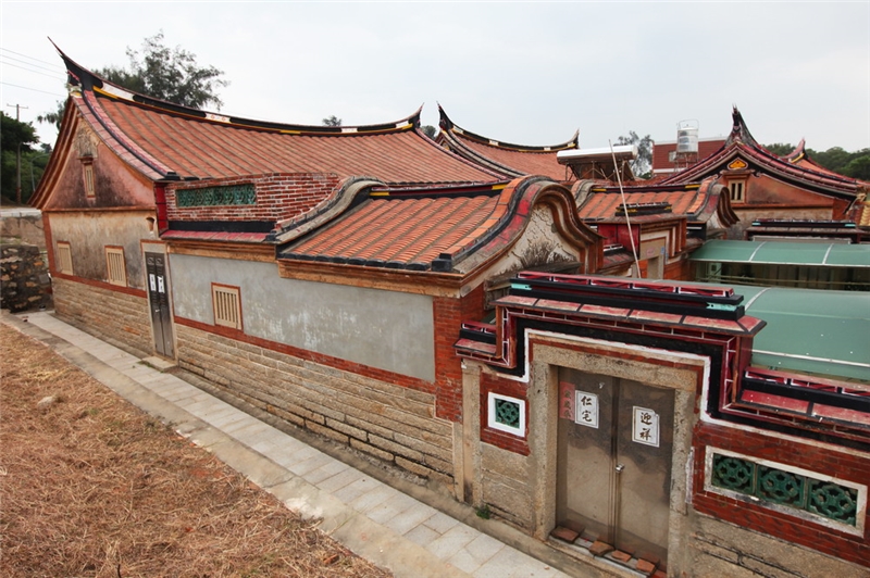 1.建築形式特殊,為一落四攑頭加前迴向五腳基疊樓。一落四攑頭之左、右、背立面下堵為花崗石平砌,上堵抹灰,轉角以煙炙磚銜接,兩側牆規門旁以綠釉花磚及煙炙磚裝飾。 2.正身屋脊為翹脊,翹脊下方脊塞為一隻小獅子。脊墜泥塑精巧,以懸魚、倒懸之蝙蝠等樣式裝飾,富有「福到」等吉祥寓意。 3.攑頭為圓脊,脊墜亦以泥塑裝飾,女兒牆以綠釉花磚裝飾。 4.迴向形式為洋樓式五腳基疊樓,疊樓窗楣為火焰型。疊樓頂層之女兒牆以綠釉花磚裝飾,二樓露臺則為花瓶欄杆。 5.建築以隘門鄰接左側建築作為防禦。