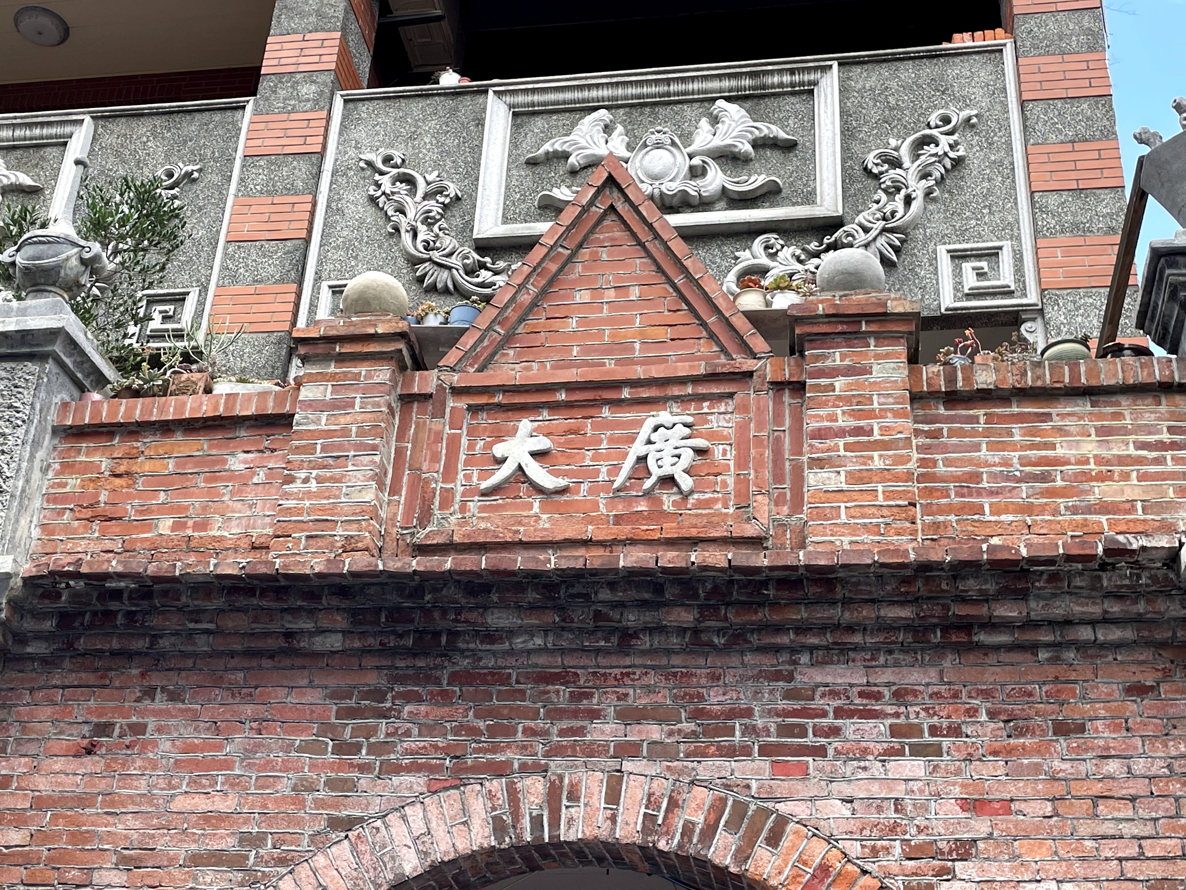 大溪和平路廣大為大正 7 年(1918 年)市區改正之後大溪老街典型的三拱牌樓商店,廣大的牌樓面以日治時期的清水磚砌成,磚縫以灰泥向外塗抹成半圓形的「凸縫 」, 作工細緻。舊有山牆牆面損壞,現況係民國 87 年(1998 年)實施「大溪和平路美化工程」時重新砌築而成,可從清水磚的色澤看出其中的差異。