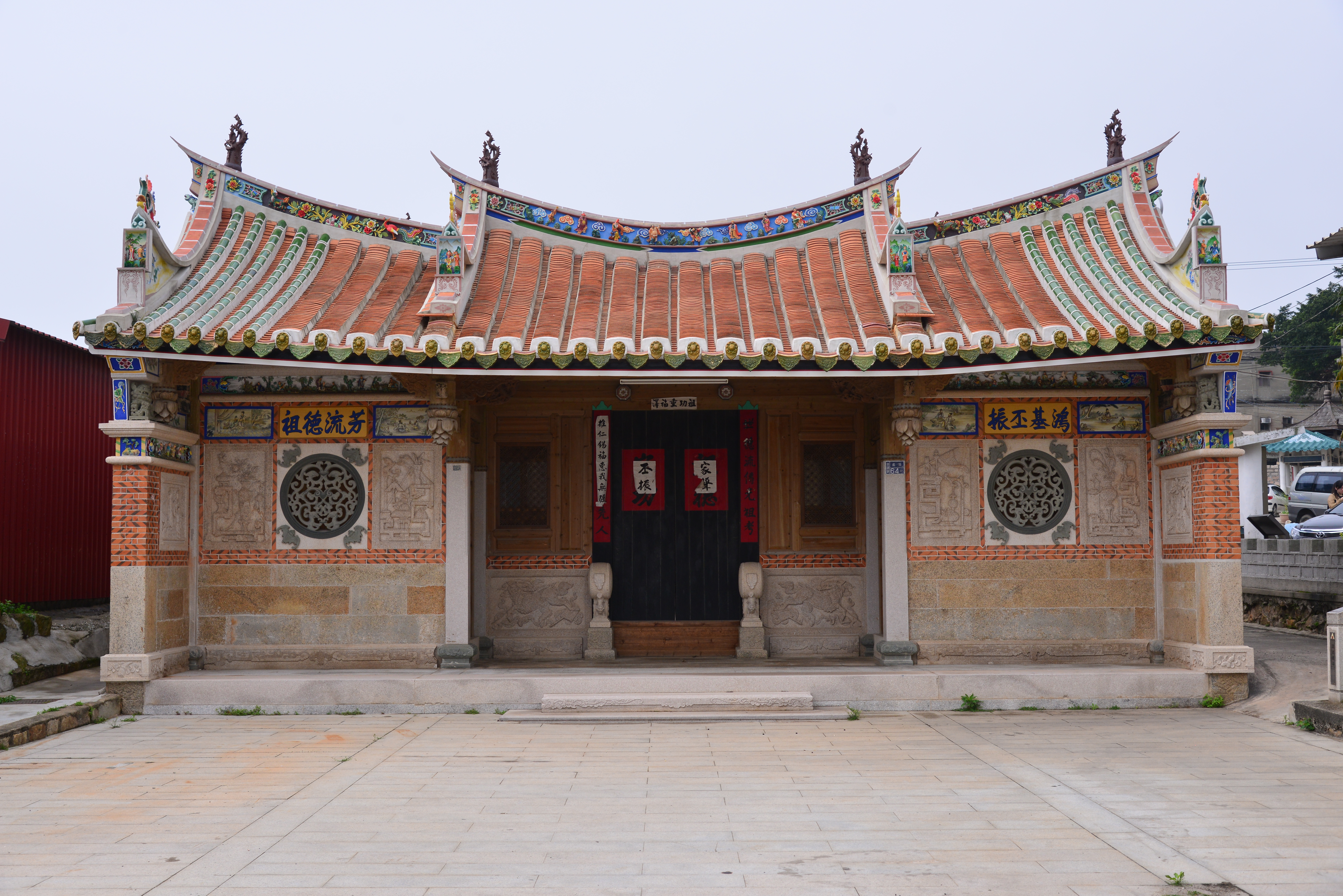建築本體為二進之宗祠建築,構造為硬山擱檁承重牆系統,第一進屋頂採三川脊方式處理,屋坡兩側各以五壟筒瓦收邊,屋脊飾中央飾以八仙人物,兩側則有花鳥剪黏與泥塑,規帶下方牌頭則繪有人物故事;後落採傳統閩南式雙坡翹脊型式,屋脊亦飾有泥塑剪粘。翹脊兩端則有金門宗祠建築特有之新作上釉陶製龍隱。 建築前方有宗祠外埕,前落簷口有一木作護欄,前檐結構採用木構架,出屐以關刀栱及斗支撐,尾端以蓮花吊筒收頭。榻受以中港間內凹為入口,中央大門及左右對看榻受門作為進入室內之通道,大門前方有一對抱鼓石。榻受鏡面下緣作封堵石砌,上緣對看堵與面堵皆為石雕,左右面堵以青斗石作石雕圓窗,上方分別提有橫批:「鴻基丕振」、「祖德流芳」。水車堵則以交趾陶裝飾。側、背立面牆基為九勻花崗石磉石砌、牆身外層抹灰,大規壁均有脊墜裝飾。