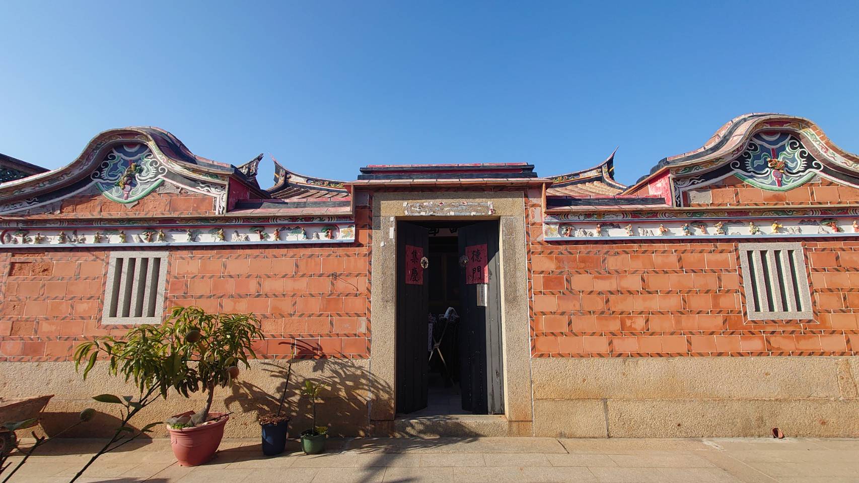 建築外牆及深井構材上緣為斗仔砌,下緣為花崗石(泉州白)檻牆;正廳立面上緣為木構格柵,下緣為磚丁砌。正立面外牆水車堵有交趾陶裝飾,圓規上則有象徵吉祥之泥塑墜飾。外埕設置旗杆座「舉人旗杆」。