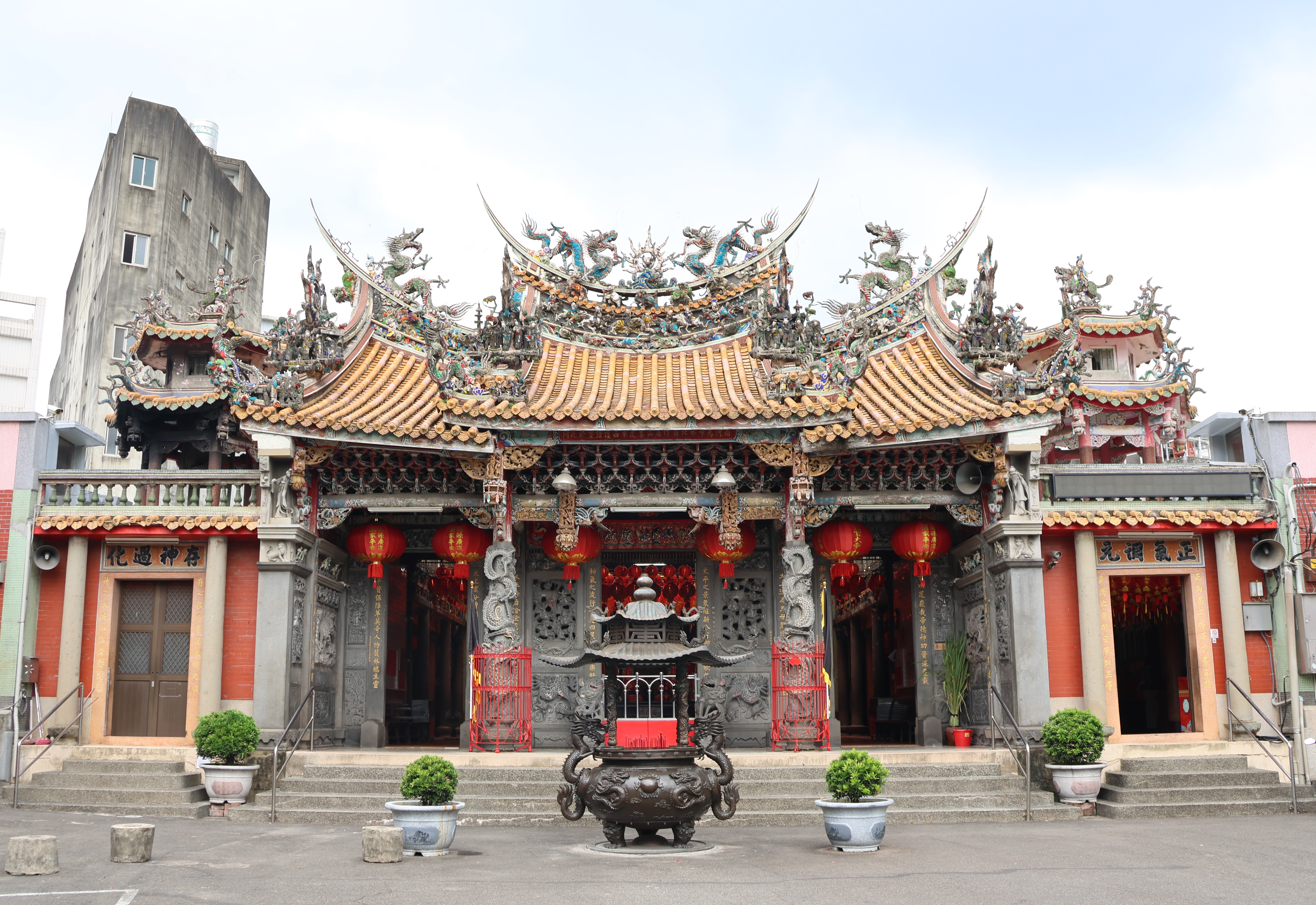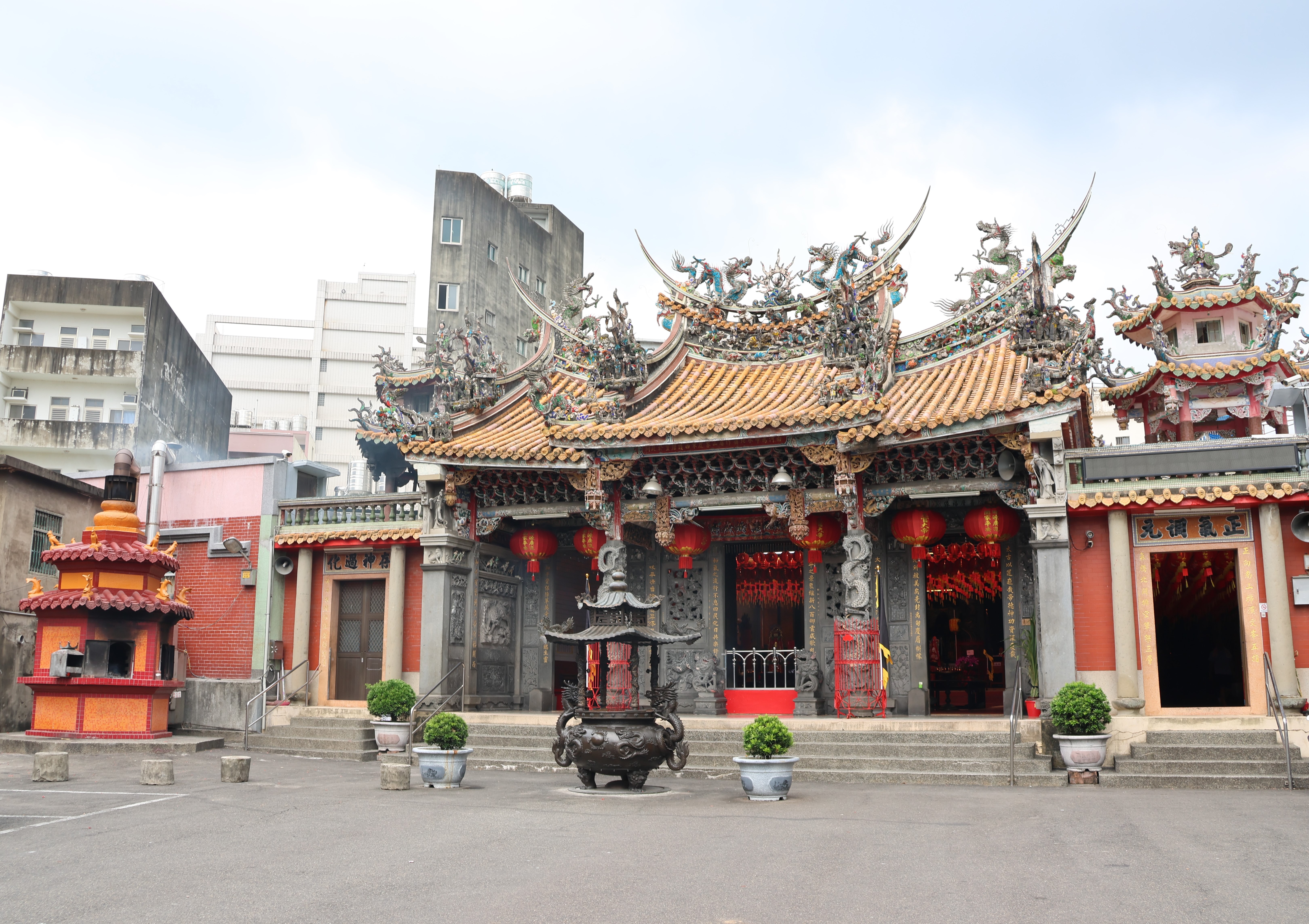 建築興建史、使用變遷史 關西約於乾隆五十八(1793)年由「連際盛」公號開啟墾拓事業,後因墾民遭泰雅族人襲擊,而於嘉慶年間由衛阿貴承接。衛阿貴成立公館作為課租收穀之地,並將此地改稱為「新興庄」。嘉慶二十五(1820)年衛阿貴的五個兒子合組「衛壽宗」公號,接替墾首地位,並於道光三(1823)年將「新興庄」改為「鹹菜甕」,後轉為使用「咸菜硼」之名。 關西太和宮,又稱為三界廟,主祀三官大帝,約於清嘉慶十七(1812)年,由衛阿貴所創建,原址位於復興庄。清同治年間由黃台三、黃台貴等人發起修建,位置遷移至今關西分駐所一帶,日治初期被佔為竹北二堡辨務署,後遭日人焚毀。 明治三十二(1900)年羅碧玉、陳春隆等人發起新建完竣,並擇遷至現址前方,而改稱太和宮。昭和四(1929)年,羅碧玉、黃德洋等人再發起遷建至今址,於昭和六年完工。民國五十八年廟宇進行修繕,六十一年完工,但前後殿部分均保留原有木構,而成為今日所見之廟貌。 太和宮整體為二殿二廊二橫規模,左右橫屋上設鐘鼓樓。三川殿明間作假四垂屋頂,特別是本廟的木作及裝飾部份是新竹縣廟宇難得的佳作。由於太和宮建築表現精美匠藝,且是地方信仰中心,極具歷史藝術價值,於民國九十年指定為古蹟。 建築相關之人物事件歷史 太和宮歷經多次之修建,昭和年間修建時聘請大木匠師徐清主持,其高徒卓見發、梁錦祥協助,不但廟身高聳,三川殿步口上方的牌樓面斗拱展現極高的藝術價值,搭配抬高的地基,更顯廟宇的莊嚴與壯麗。而本廟之剪黏、泥塑、交趾陶為名匠姚自來作品,石雕部分也出自蔣梅水之手,均為日治時期北台匠師的一時之選。 太和宮主祀三官大帝,配祀五穀神農大帝、觀音菩薩、天上聖母、關聖帝君等等,足見其在地方精神生活上所扮演之重要角色。每年七月中元節慶典,由十大庄分區輪流辦理,可見其輪祀圈的廣闊,及其在關西地區的信仰核心地位。 建築場所精神價值 關西太和宮為地方信仰核心,與市街的形成與發展息息相關,更是地方的政治、社會中心。太和宮的木作為葉金萬匠師系統,不僅木作類型豐富、手法細膩,還有姚自來匠師的交趾陶作品、蔣梅水石雕作品,且保存狀況良好,頗具藝術價值。此外,年度祭典以及分區輪流祭祀,均為當地重要民俗習慣。