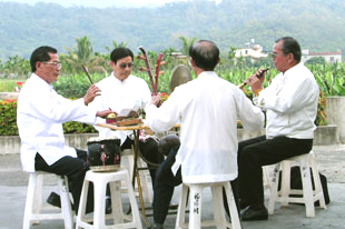 美濃地區的八音團,演奏形式以四人組的基本型態為主,具濃厚地方色彩。