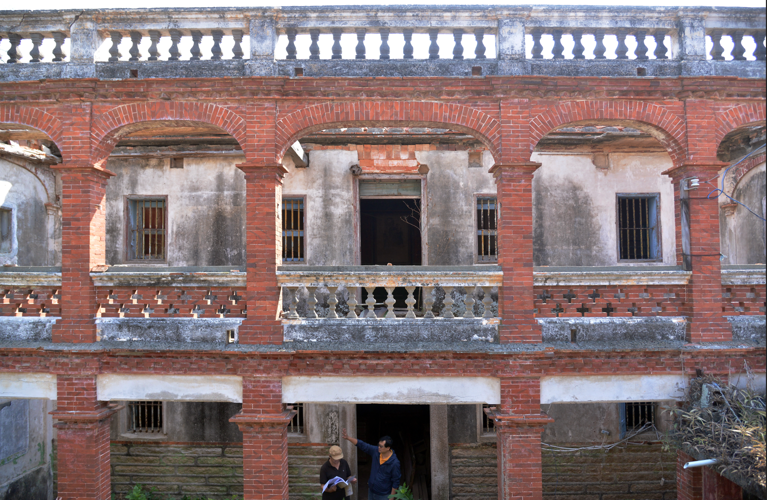 主棟五腳基洋樓屋頂多處破損,木構件受潮腐朽塌落、前迴向洋樓屋瓦鬆脫破損;建築外牆風化滲漬嚴重,局部灰壁剝落、鋼筋裸露。