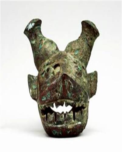 「嵌綠松石輈頭飾」是殷墟考古發現以來僅有的二件輈頭飾之一。位於馬車的衡及輈交接的前緣,足以彰顯車主的身份地位。全器為獸頭形,以綠松石鑲嵌出獸頭的各個部位,具有重要歷史、文化、科學價值。