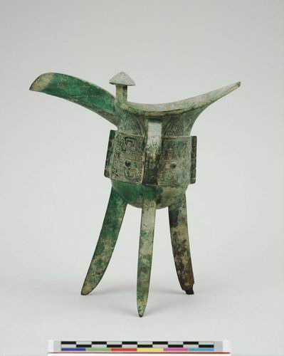 出土於西北岡1400號大墓南墓道,共出四觚四爵,其中三觚圈足內,及一爵鋬內同銘文「 」字,可能代表與商王室有關係的族徽。此件品相佳,保存良好,具有重要歷史、文化、科學價值。