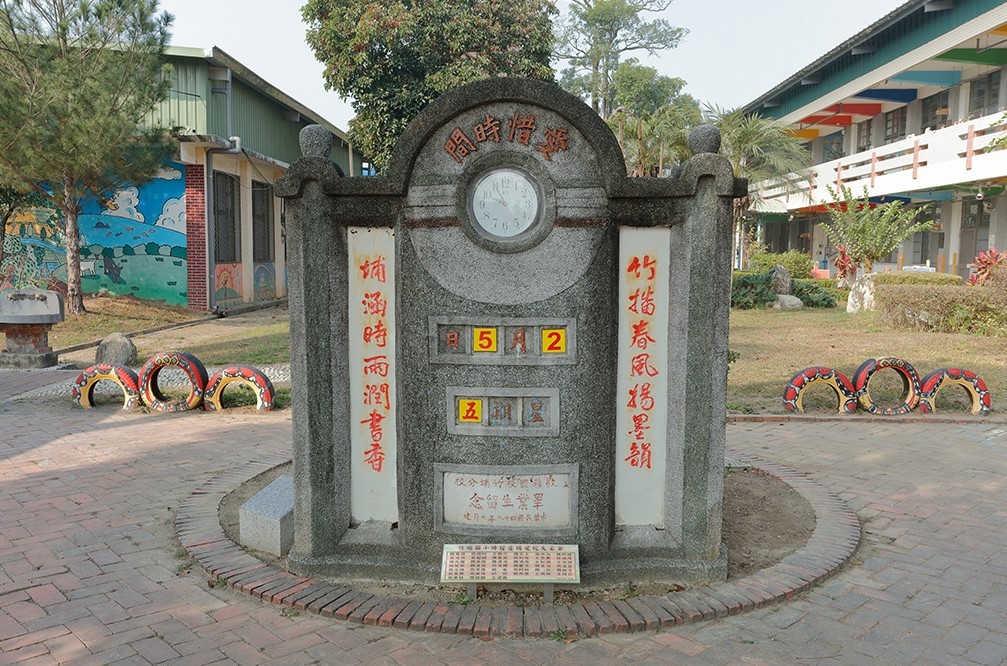 1、為原臺南縣唯二之時鐘座,具稀少性。 2、時鐘座對聯為鹽份地帶書法家王英雄所篆,具有與當地文化結合之意義。 3、此時鐘座原貌猶存,雖歷任校長輪調,仍能保留下來,誠屬可貴,兼具創校及校友紀念之歷史意義。