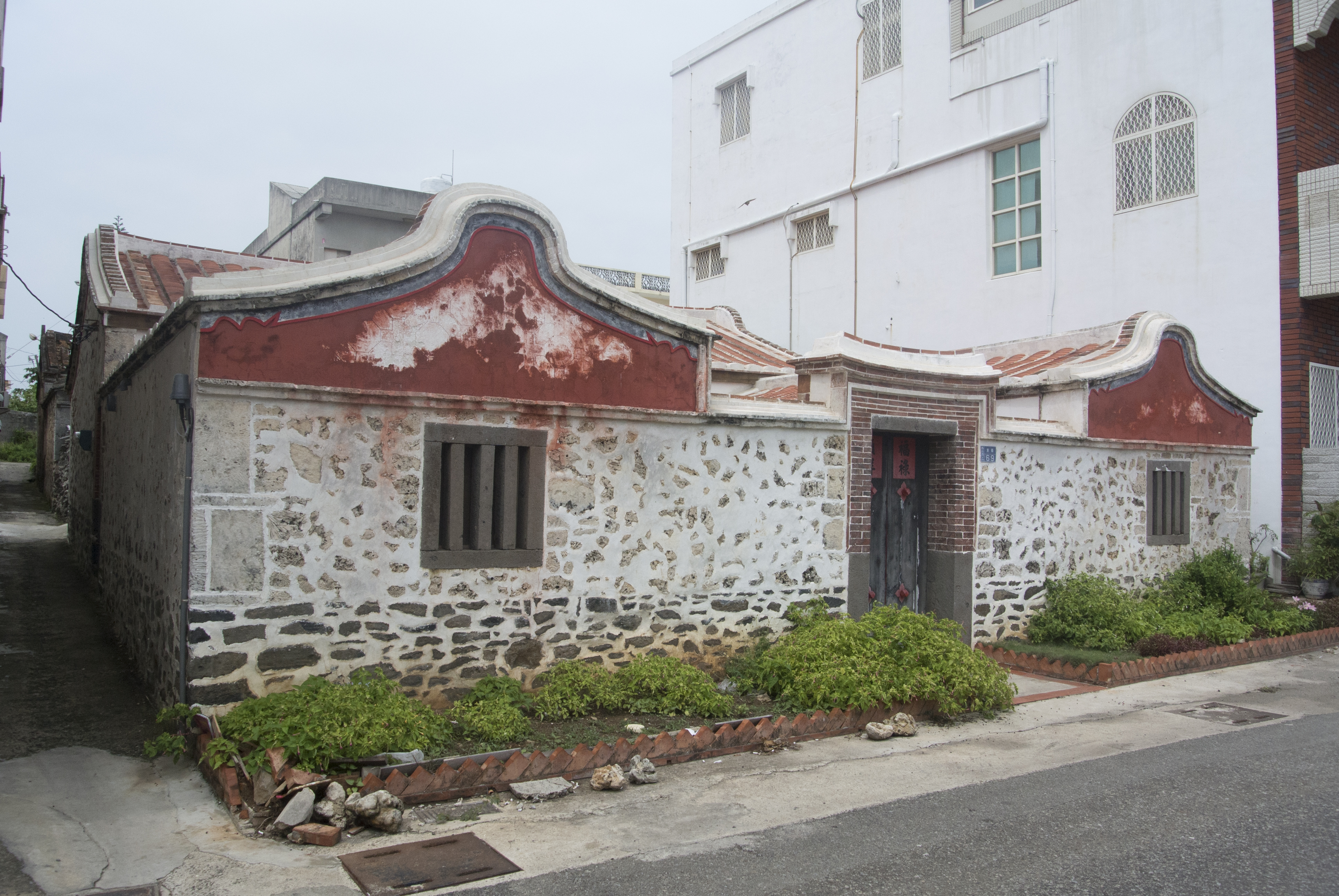 目前現況古宅主體內外牆面灰泥嚴重剝落及鹽化現象。 民國99(2010)年2月9日府授文資字第0993700016號函同意核予補助證明-澎湖縣歷史建築(傳統古厝)維護及再利用獎助計畫。 規劃設計:林献瑞建築師事務所 施工廠商:澎匠營造工程有限公司