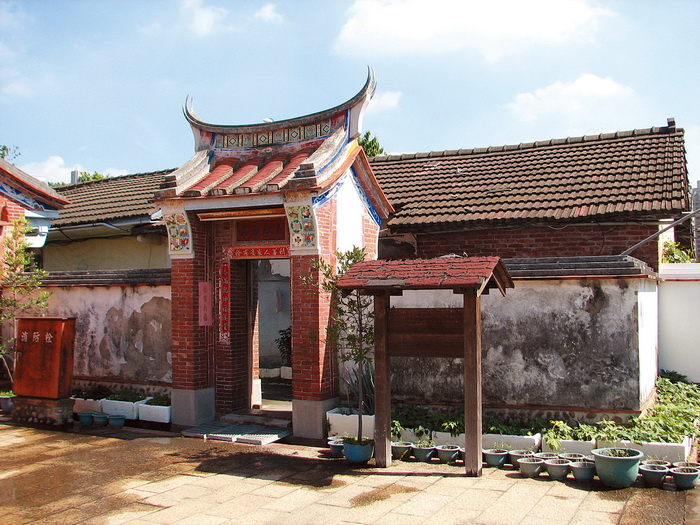 本建築入口有燕尾翹脊門樓,整體分前後兩段,屋頂原為茅草頂,戰後改鋪水泥瓦,土埆壁體以白灰粉刷牆面,牆基則原為卵石砌。