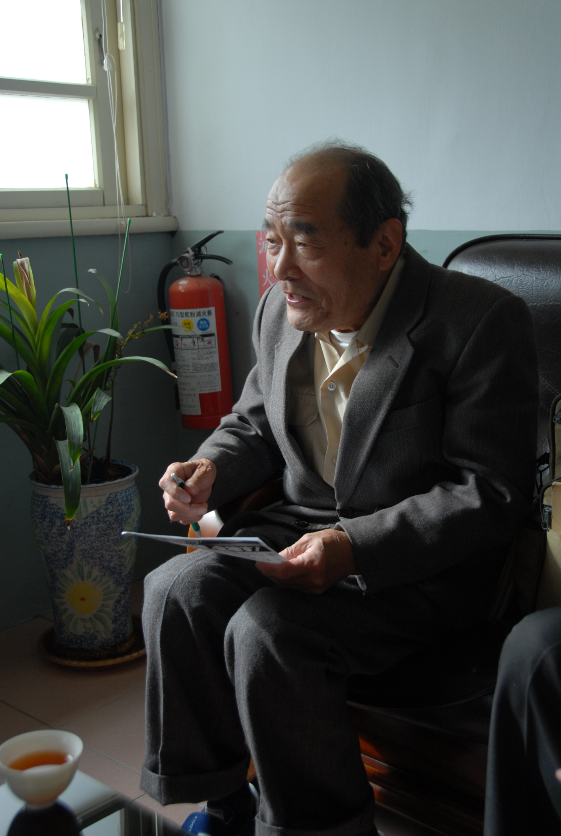 本照片為日據時期在魚池紅茶試驗支所服務的同仁,竹下貝吉先生。高齡86歲的竹下先生獨自前來找尋曾共事過的同事楊磘登先生,可惜楊先生已於2003年(民國92年)逝世,但竹下先生帶來了讓人驚喜的特別禮物,是他在魚池紅茶試驗支所服務時期與新井支所長合影照片。