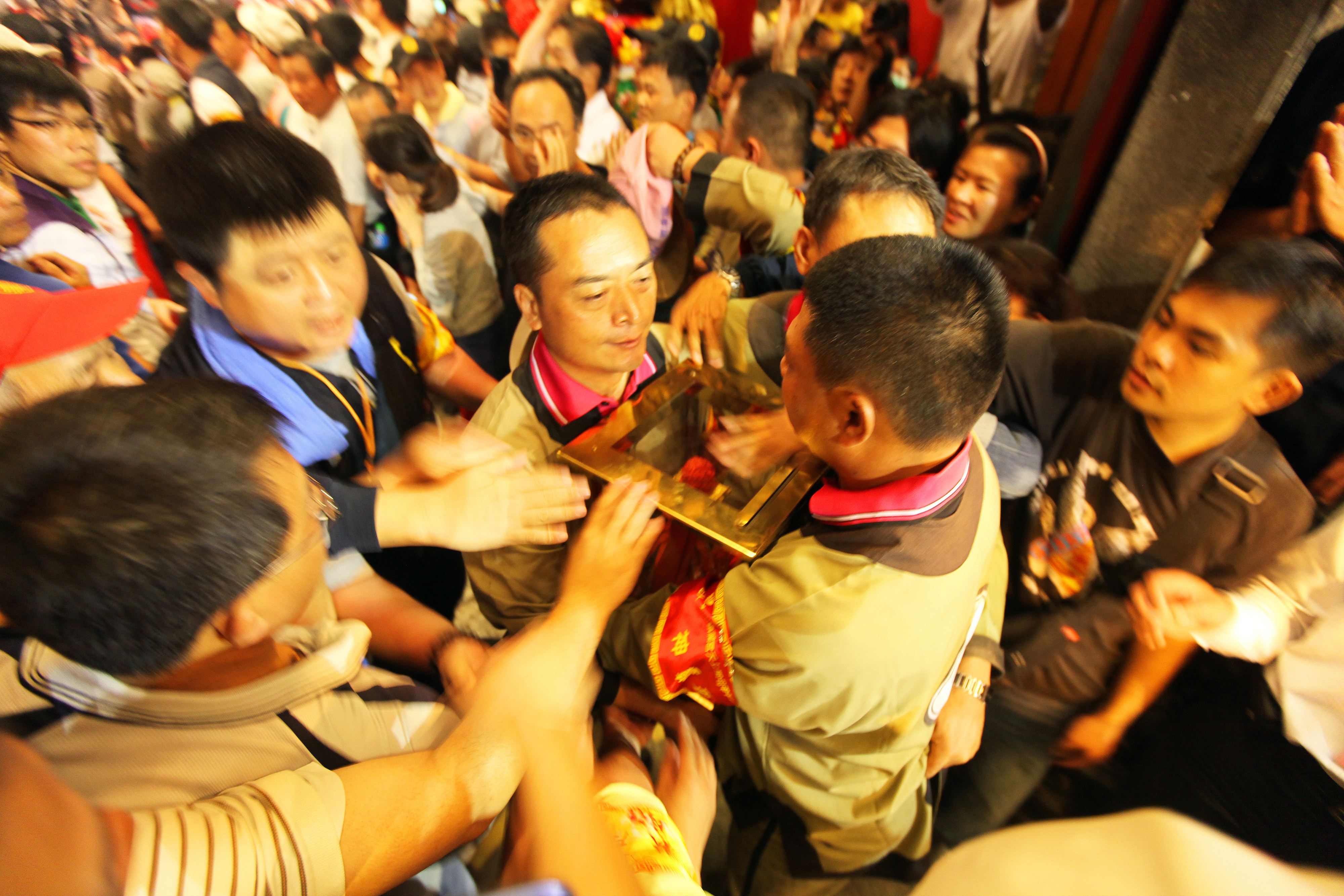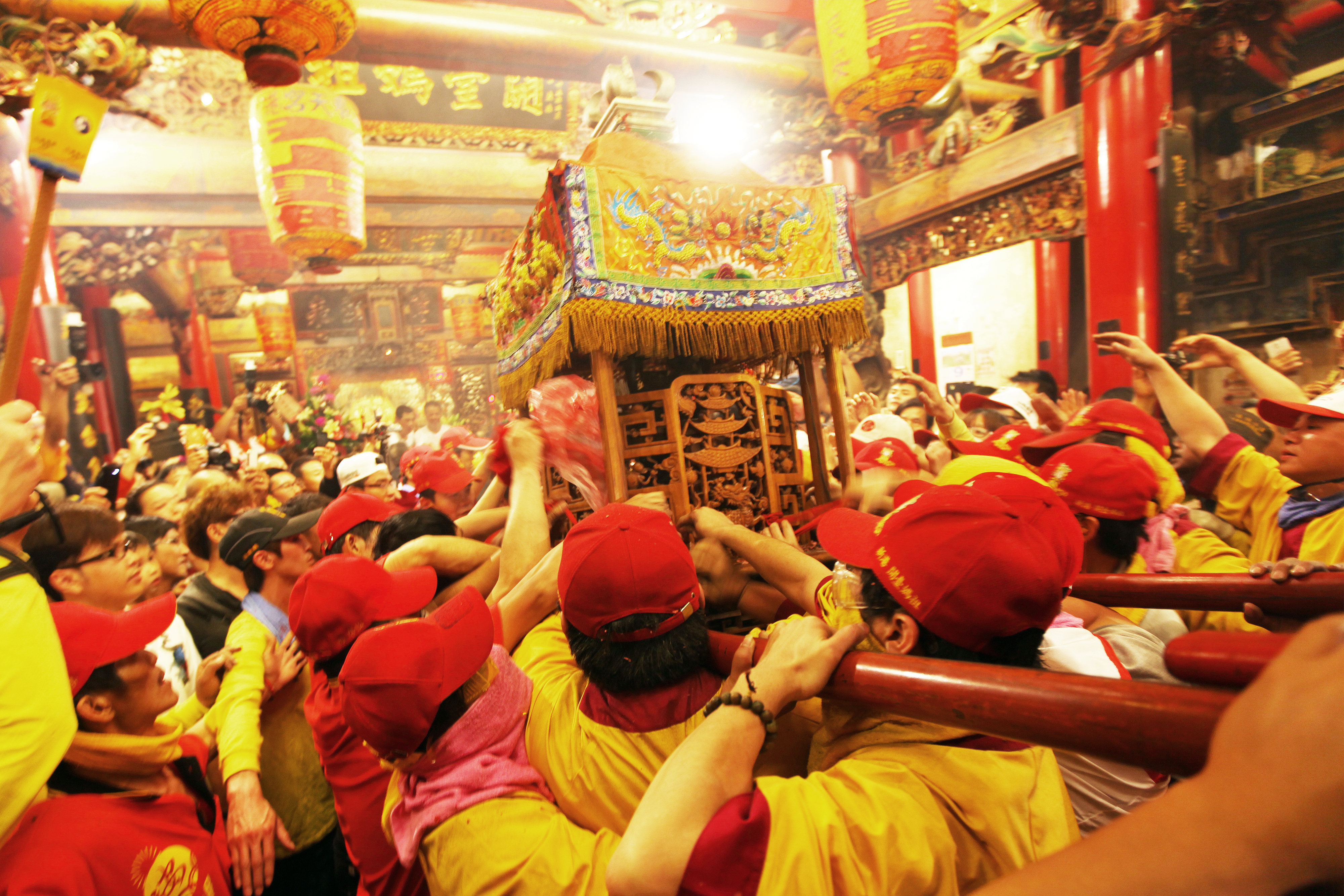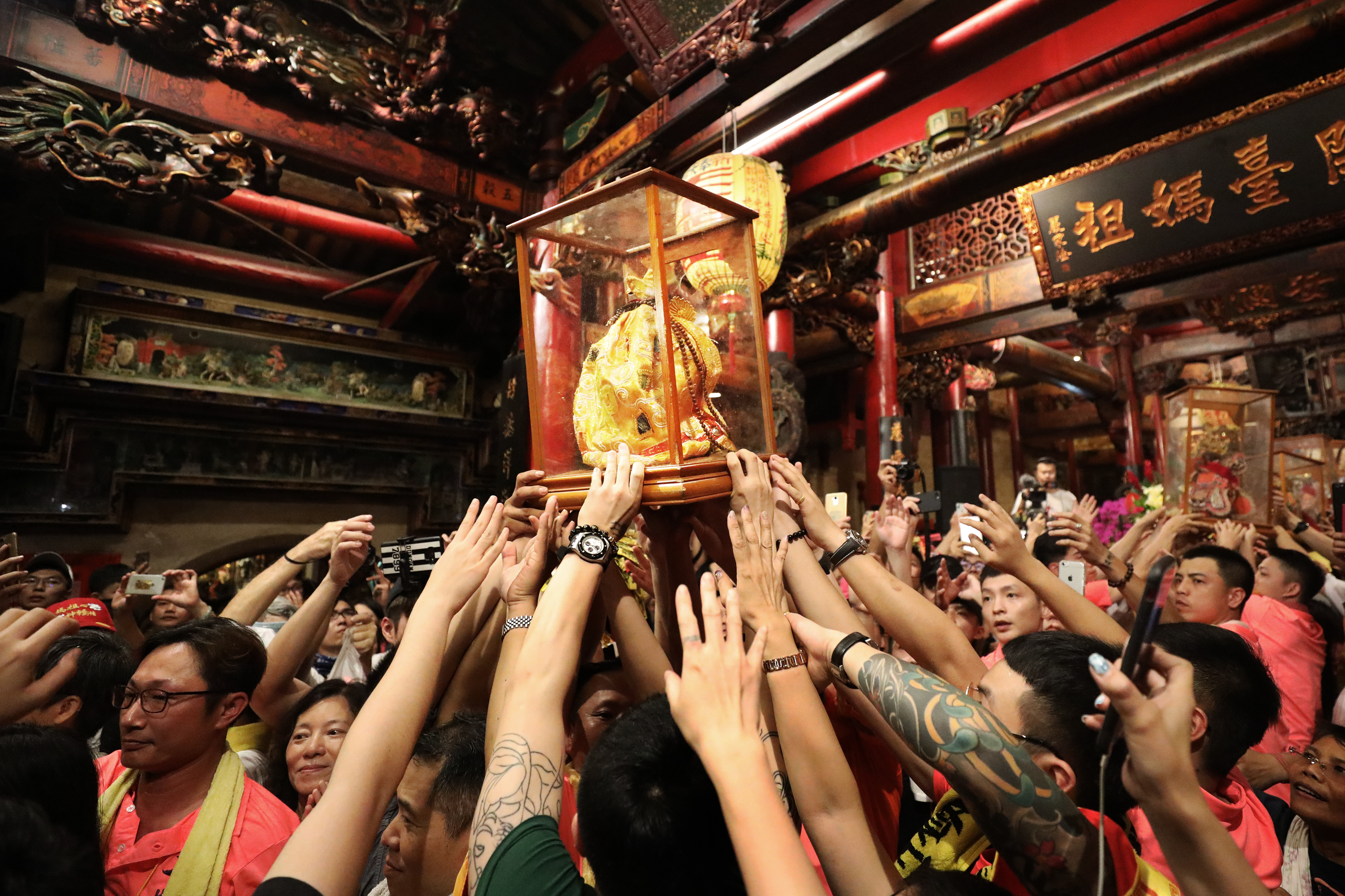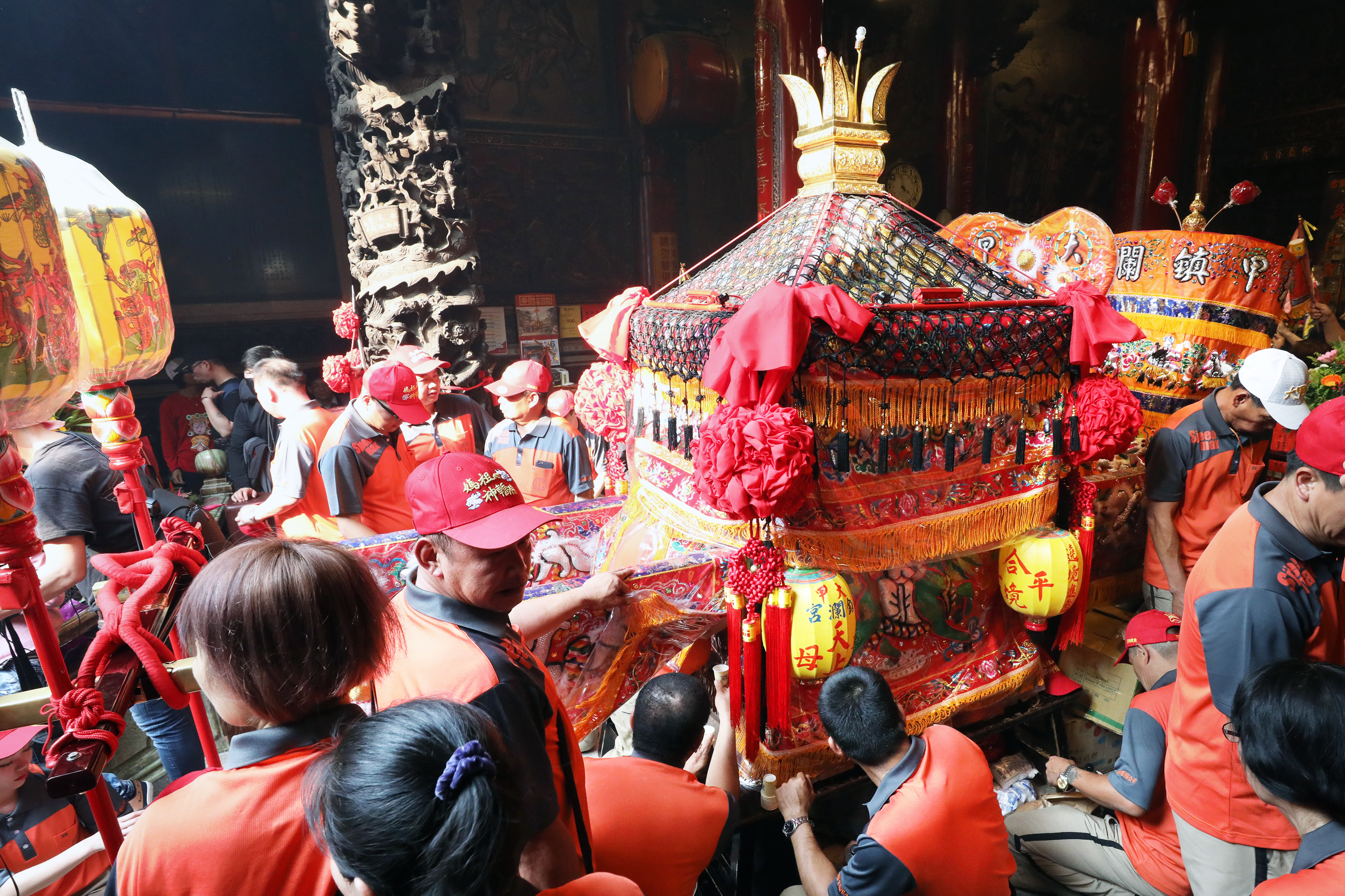 先行淨轎,再迎請正爐媽、副爐媽、湄洲媽及千順將軍等神登轎。