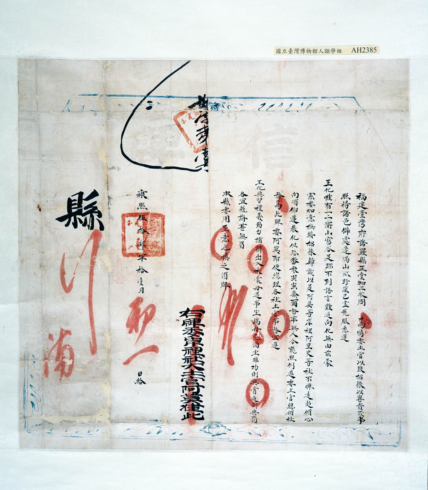 1.現存最早官方原住民頭目委任狀文獻。 2.為清政府官方和原住民之間重要之文書,歷史意義重大。 3.研究清代臺灣中部原漢族群關係文化史與開發史的珍貴史料。具有歷史及文獻價值。