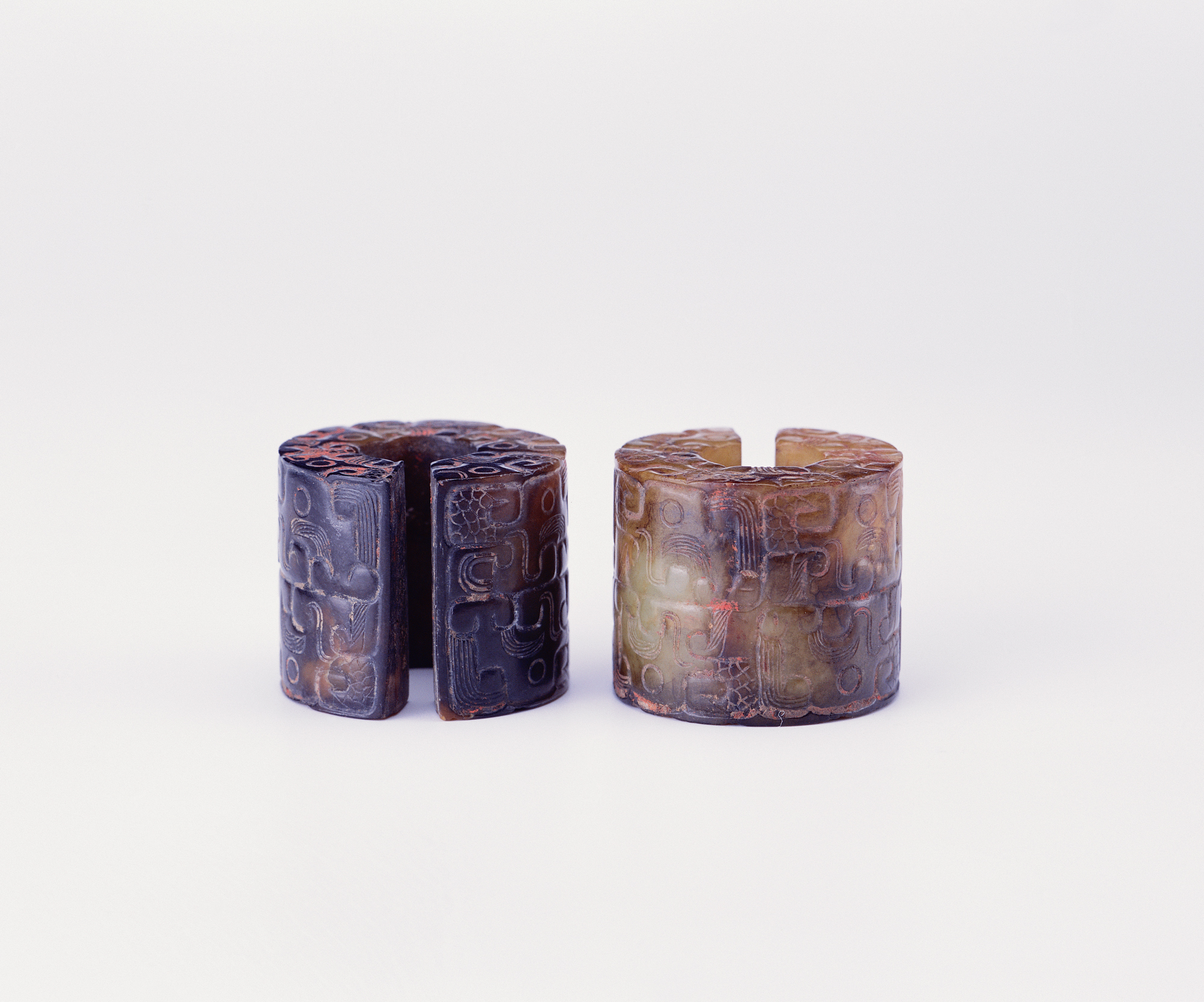 考古出土春秋時代管狀玉玦出土數量甚少,目前單件的管狀玉玦見於河南淅川下寺春秋晚期三號墓,而成對的管狀玉玦則曾出土於河南光山縣春秋早期黃君孟夫婦墓與山東省沂水縣劉家店子1號春秋墓。此對玉玦表面精雕多組淺浮雕龍首紋,屬春秋晚期之典型紋飾,與前述各件刻飾陰線龍首紋的管狀玉玦之發展脈絡前後銜接,在中國玉器發展史上具有重要意義。