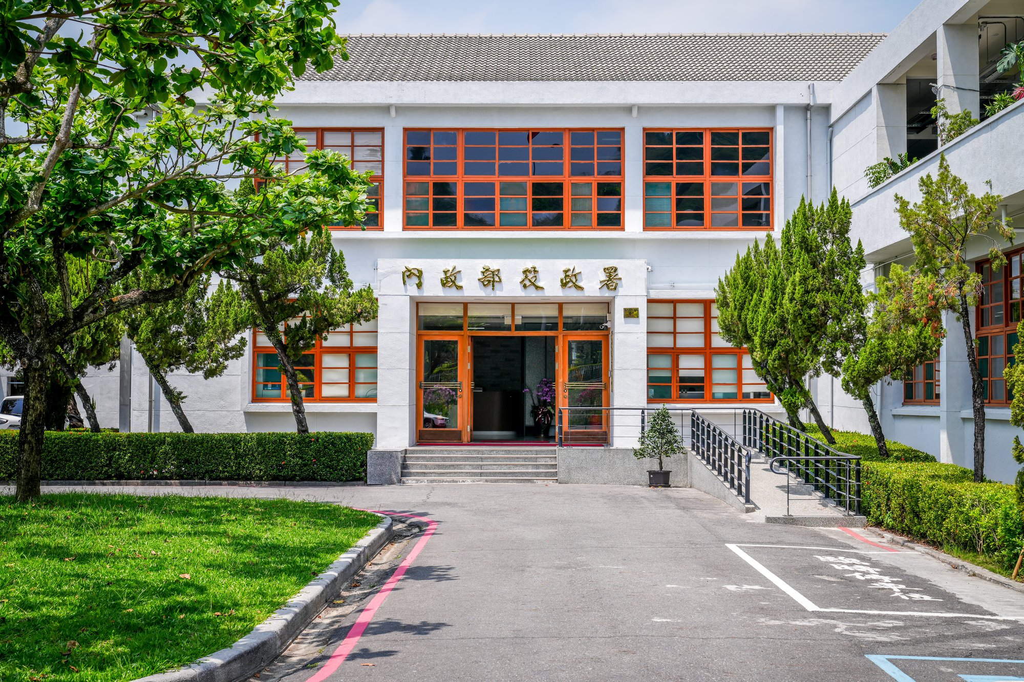 1、「類國際式樣」現代建築。 2、單邊走廊教室型辦公廳舍。 3、配合基地特性採用轉折型平面,主入口設置於短向轉折處。 4、水平的橫開窗、樑線、窗台與遮陽版強調視覺的水平性,同時又有垂直的遮陽版與柱列強化重複性韻律。