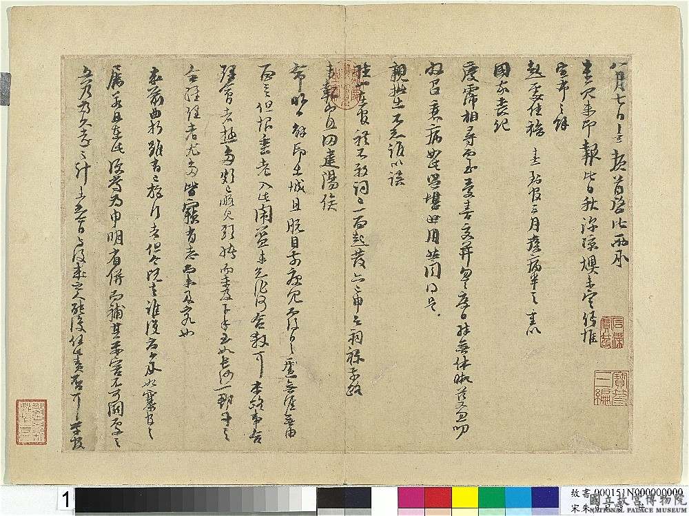 朱熹(1130-1200)是宋代理學的集大成者,畢生並以建構國家新秩序為志。故孝宗晚年延攬理學家改革國是時,曾讓他大為興奮,可惜新政剛起步,便隨孝宗的崩逝而結束。本函下筆迅捷有力,是 1194 年 8 月他卸下知潭州(湖南長沙)一職後,前往京師途中所寫,意在向部屬交待潭州政務。首段提及令人傷感的「國家喪紀」,指的正是同年6月孝宗之死,但7月寧宗繼位,他有機會入朝宣教,又讓他頓時轉憂為喜。