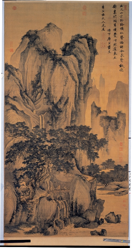 本幅為唐寅代表作品,呈現唐寅多年探索宋代李唐風格的成熟畫風。立軸山水氣勢磅礡,結構嚴密,具體呈現唐寅在明代中期畫壇復古潮流下的創造力。畫送呈吳縣知縣李經,同時可視為蘇州一地送別圖的精采畫作,助於今日瞭解明代藝術與社會網絡的關係。具有特殊藝術造詣與成就,品質精良,且具有特殊歷史、文化、藝術價值。