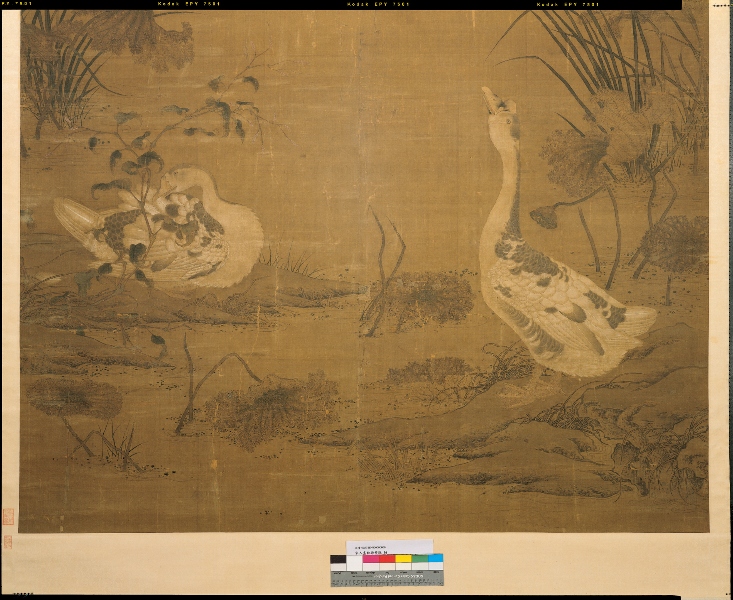 在故宮博物院藏品中,如此巨幅、品質又佳的花鳥畫,並不多見,是現存北宋汀渚水鳥罕見之代表作品。 具有特殊之時代特色,品質精良且數量特別稀少。