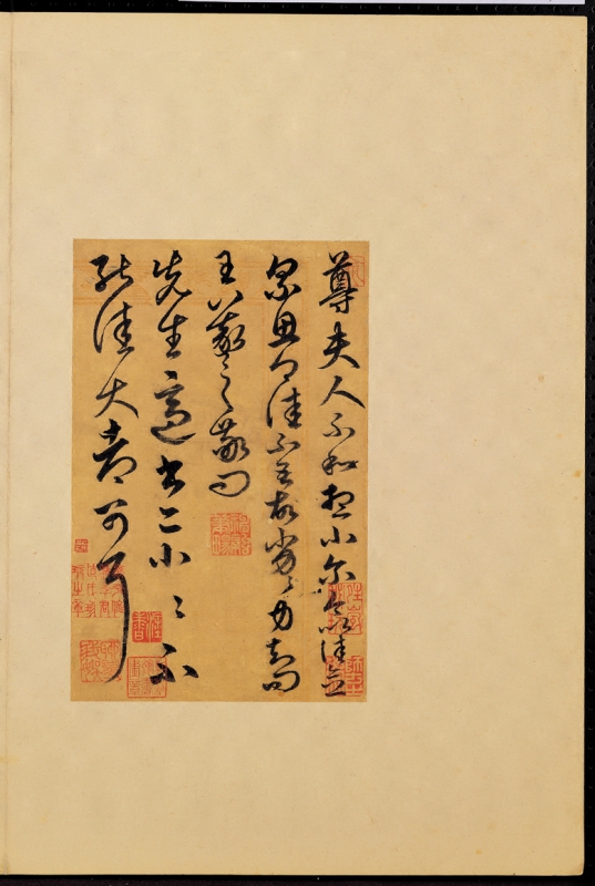 由宋入元,中國書法的發展從追求新意回歸復古,這組冊頁滙集彼時臨古之作,有趙孟頫(1254-1322)、鮮于樞(1246-1302)、俞和(1307-1382)諸人款印,再現漢晉以來古雅的書風。所臨書作依序為東晉王羲之〈裹鮓帖〉、〈採菊帖〉、〈太常帖〉,以及東晉王獻之〈鵝羣帖〉、王羲之〈知問〉、〈大都〉兩帖、東漢張芝〈八月帖〉。 東漢張芝、東晉二王的墨蹟今日已然無存,後人精心揣摩的臨寫本,尚可傳緒前賢典型,彌補缺憾,這組冊頁值得珍重。此外這組冊頁反映草書傳統的建立,從張芝到二王,世代相續,非一朝一夕之功。