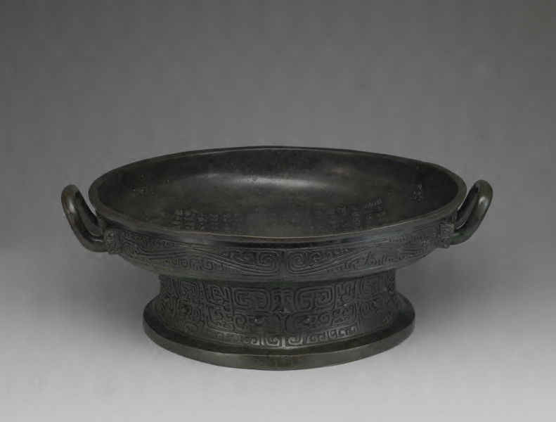 器身飾夔紋,間以獸首三,足飾獸面紋。鑄銘350字。