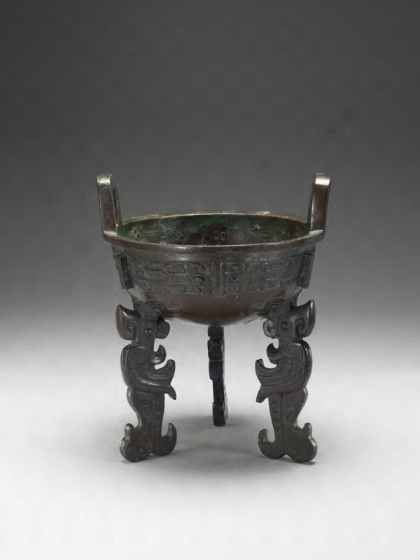 淺腹高足扁足鼎。腹飾獸面紋,扁足飾直立的鳥紋。銘文「析子孫父乙」在器壁。此類鳥紋扁足是扁足鼎中最精美的典型。