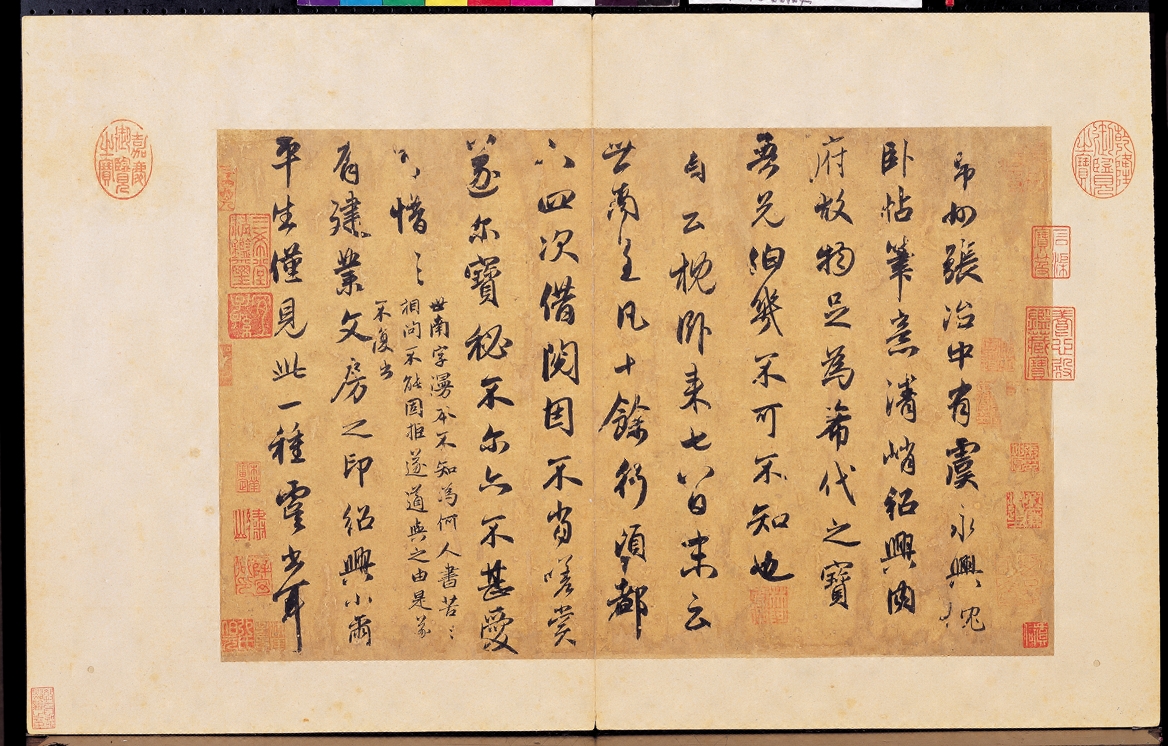 本冊集元代南北書壇領袖趙孟頫與鮮于樞尺牘信札,書風率意天真,面目各具,為二人傳世的代表作,是研究元代書法的重要參考資料。