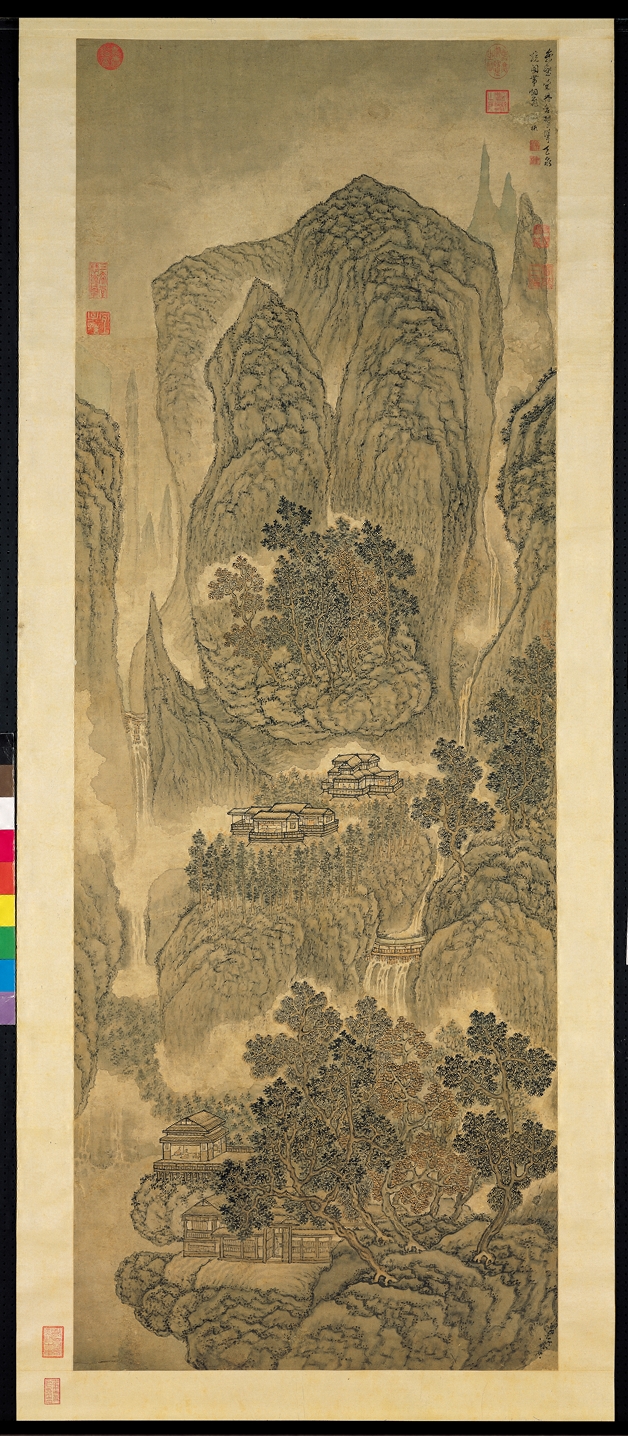 此畫為吳彬山水畫的代表作品之一。吳彬山水畫除有奇特造型之外,也同時追求一種古樸的特質,本幅即可見追擬北宋大山之意趣,是一晚明畫史復古風尚的產物。