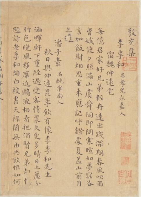 元人寫本。 是書為上虞魏仲遠錄其友酬和之詩作,前半部有匡格處係元人抄寫,後半部書頁全幅部分字跡迥異,其中有清竹垞老人朱彝尊手書題記,知其為補鈔並跋。 元代孤本,珍貴稀有,極具重要歷史、文化與學術價值。