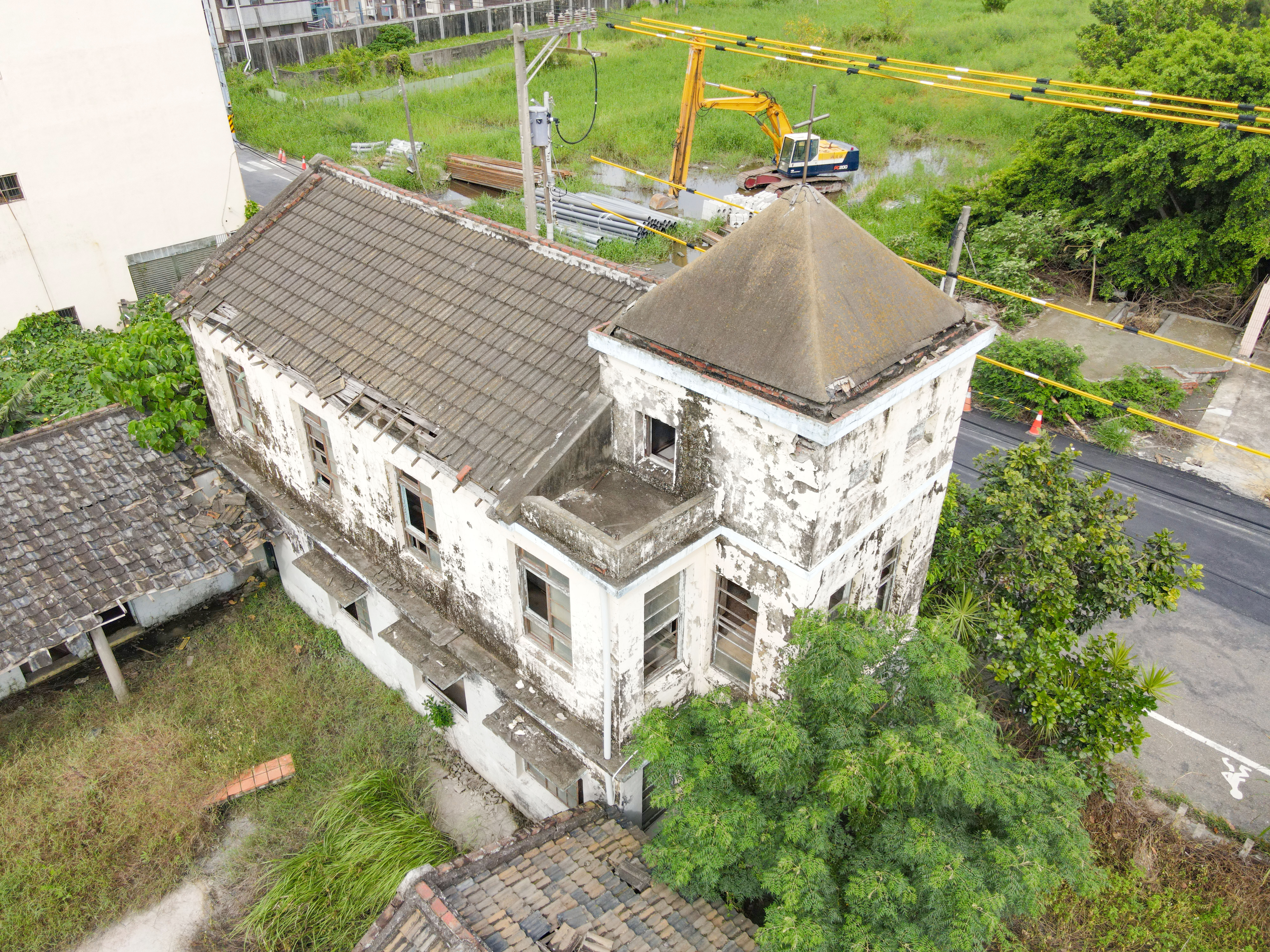 整體概況:整體看來牆面建材老化及開裂,部分有植物附生之情形。結構多處鋼筋外露及植物附生問題。屋頂結構多處崩塌及毀損,外部屋頂瓦片掉落,內部多處天花板掉落狀況。門窗多處毀損及破損。