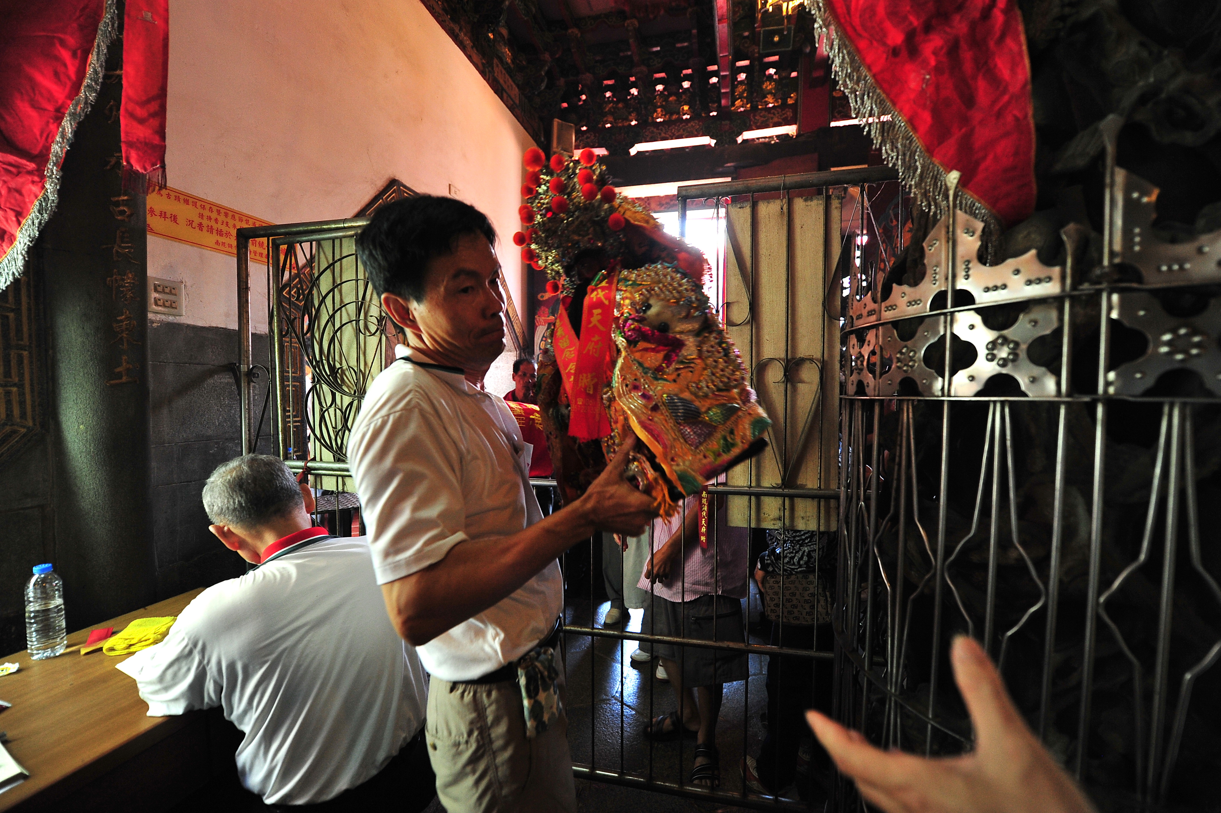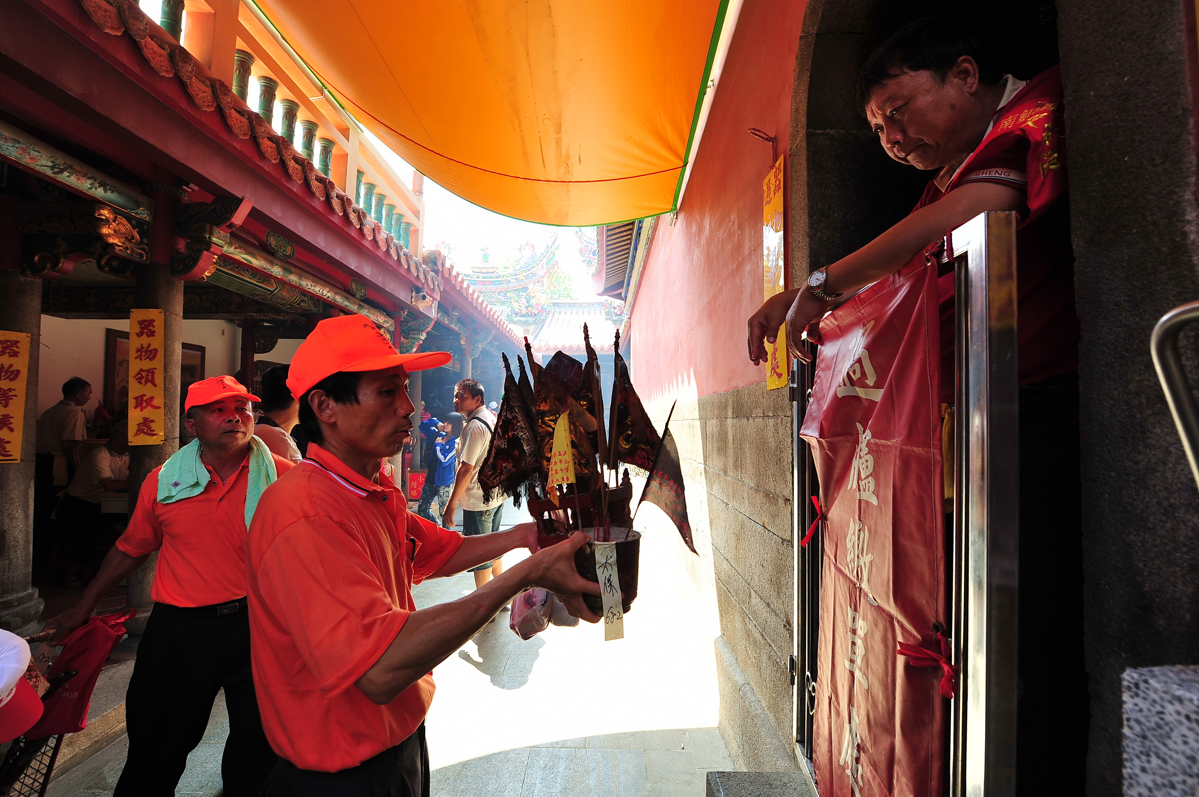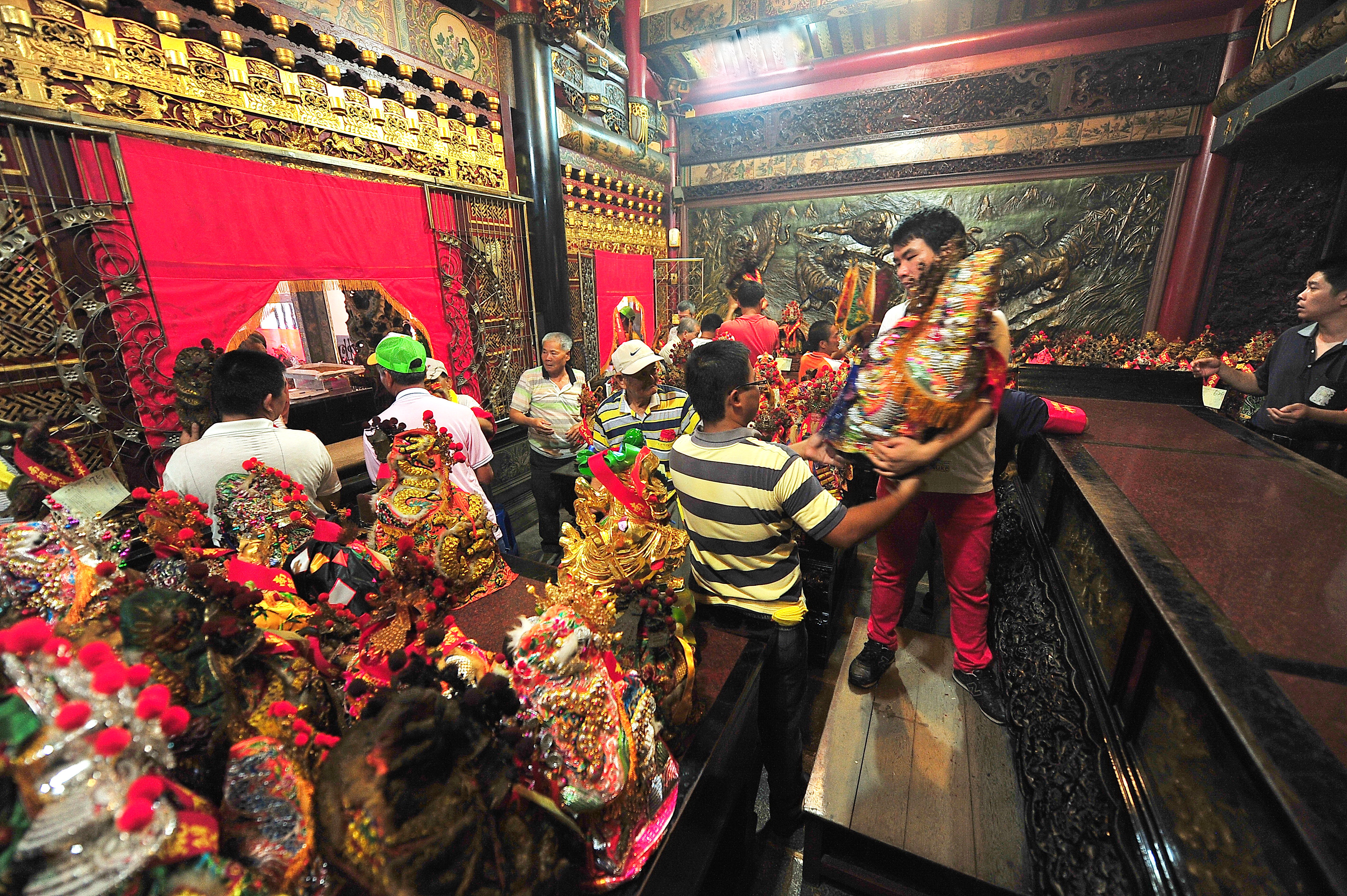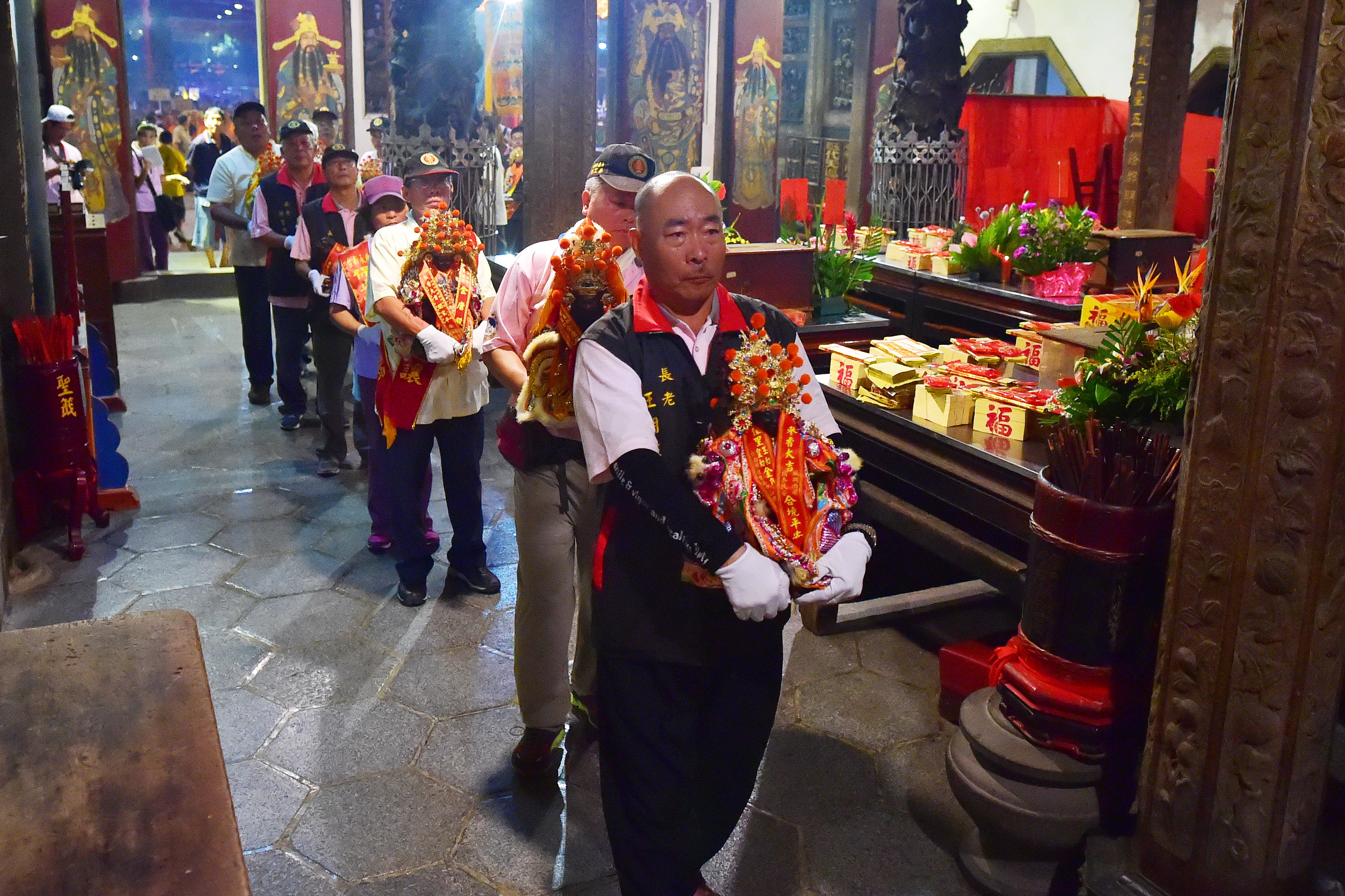 入廟後,神像及法器分別「落轎」,逐一被迎請進入正殿或暫奉區,最後都會進入殿內「過五王香煙」。