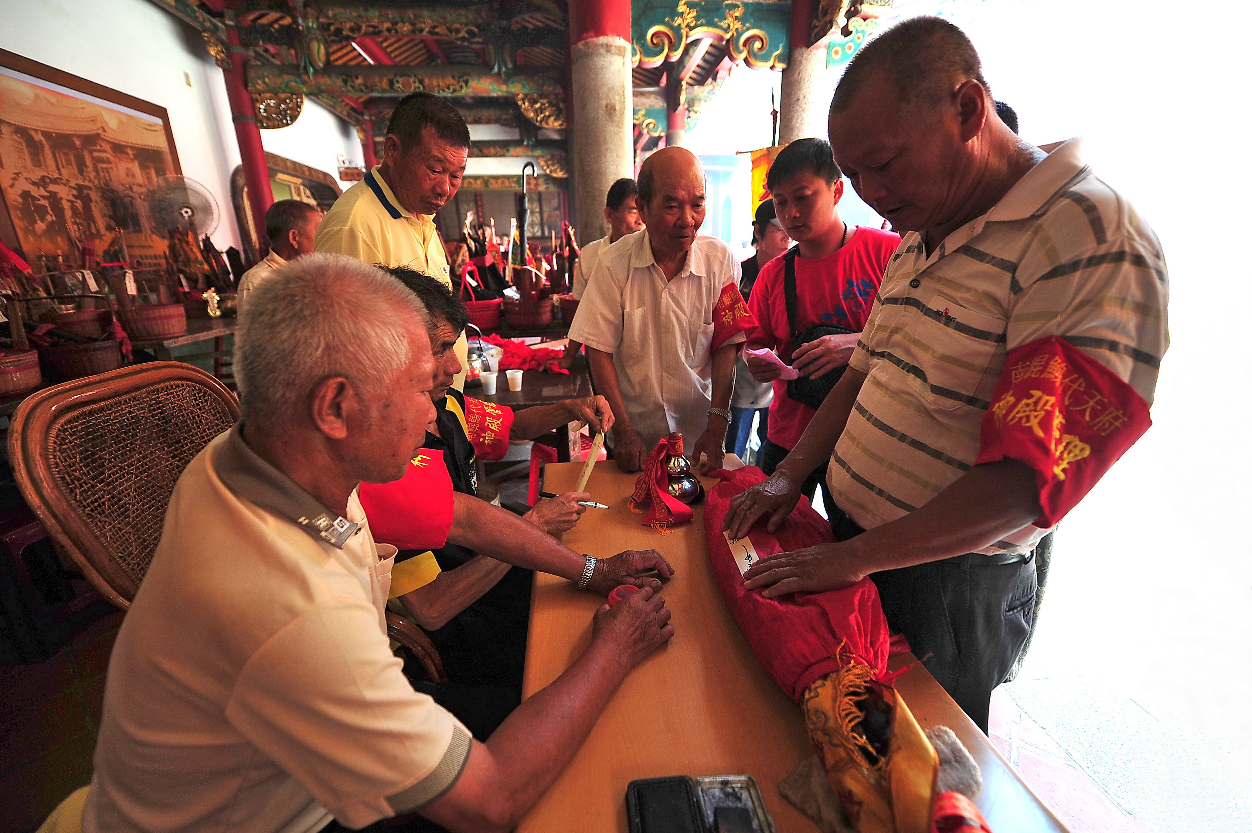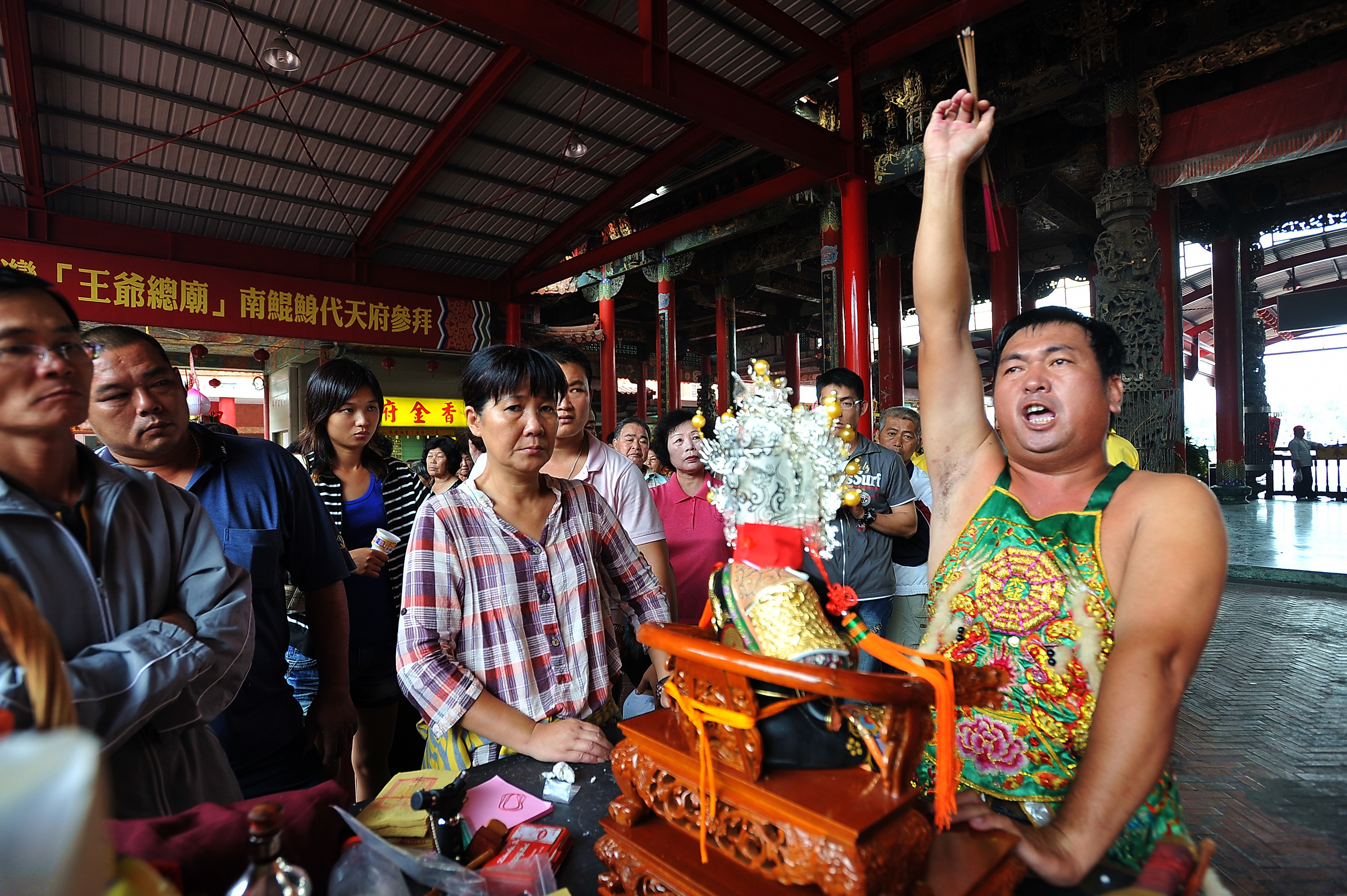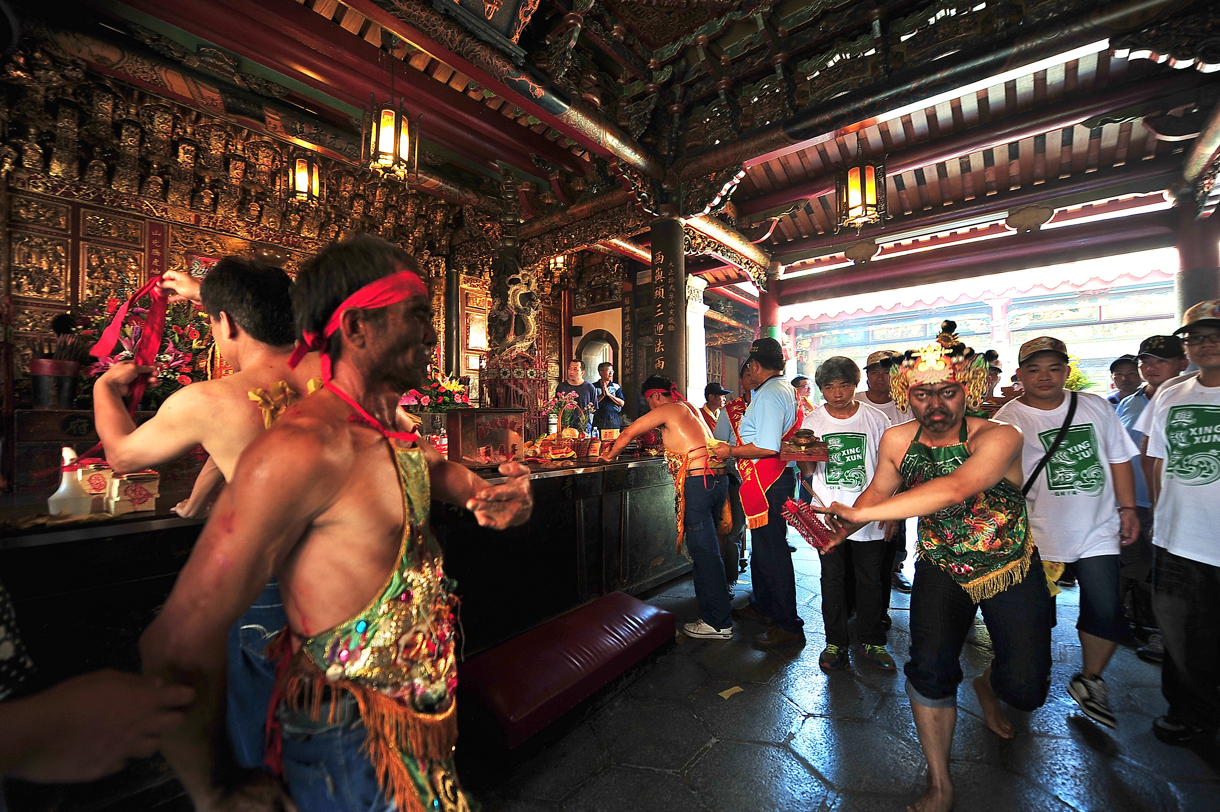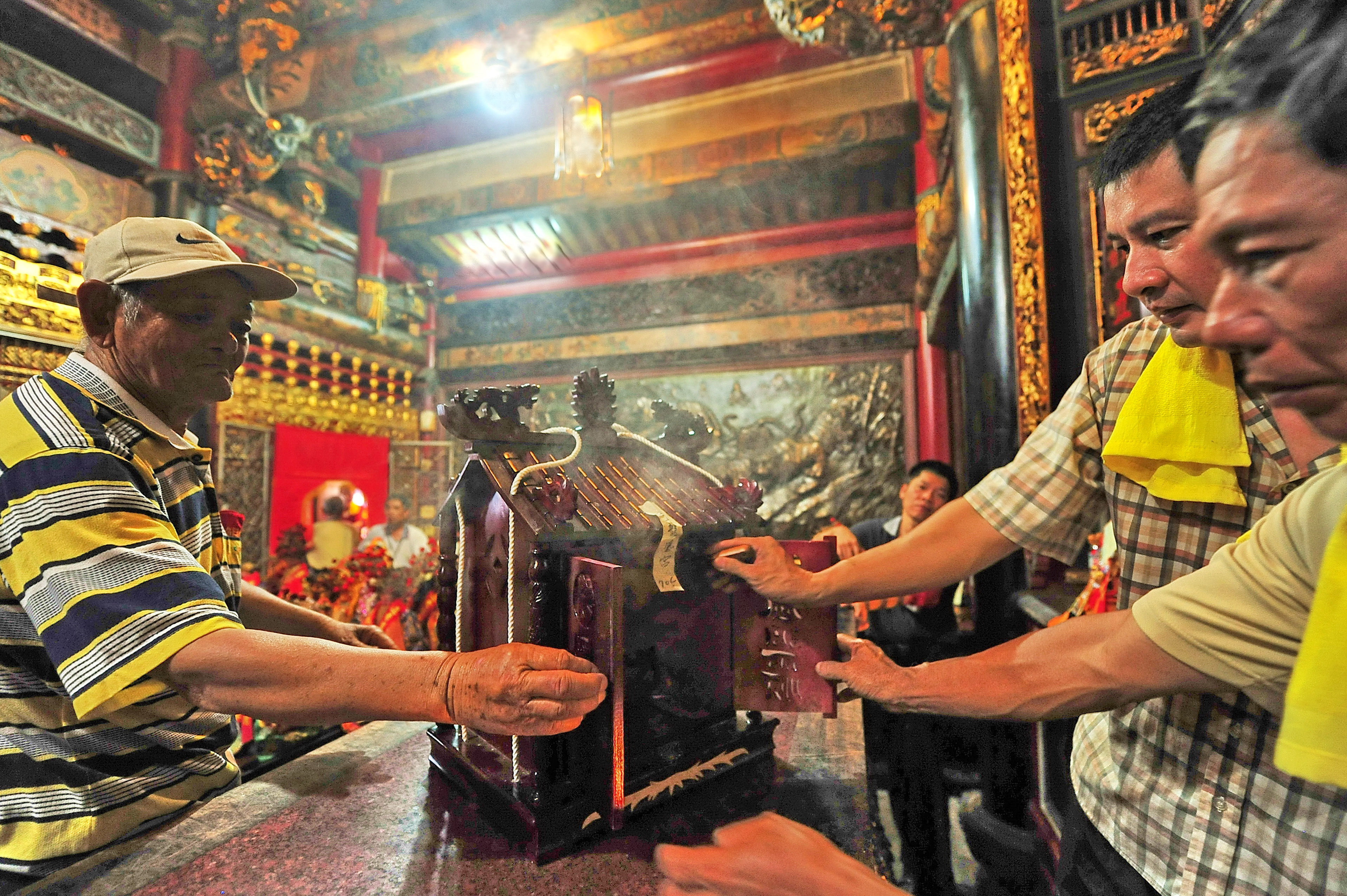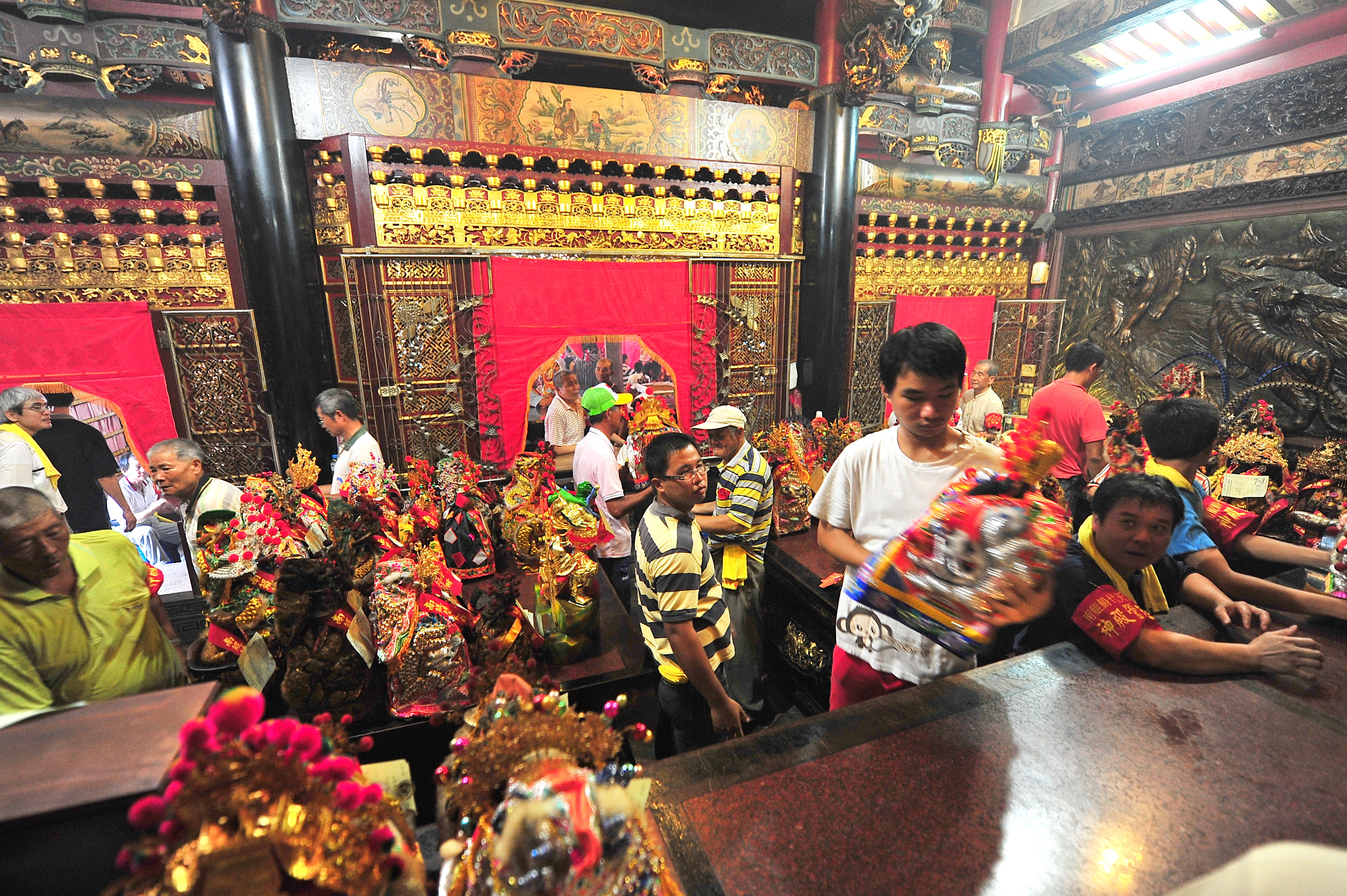 入廟後,神像及法器分別「落轎」,逐一被迎請進入正殿或暫奉區,最後都會進入殿內「過五王香煙」。