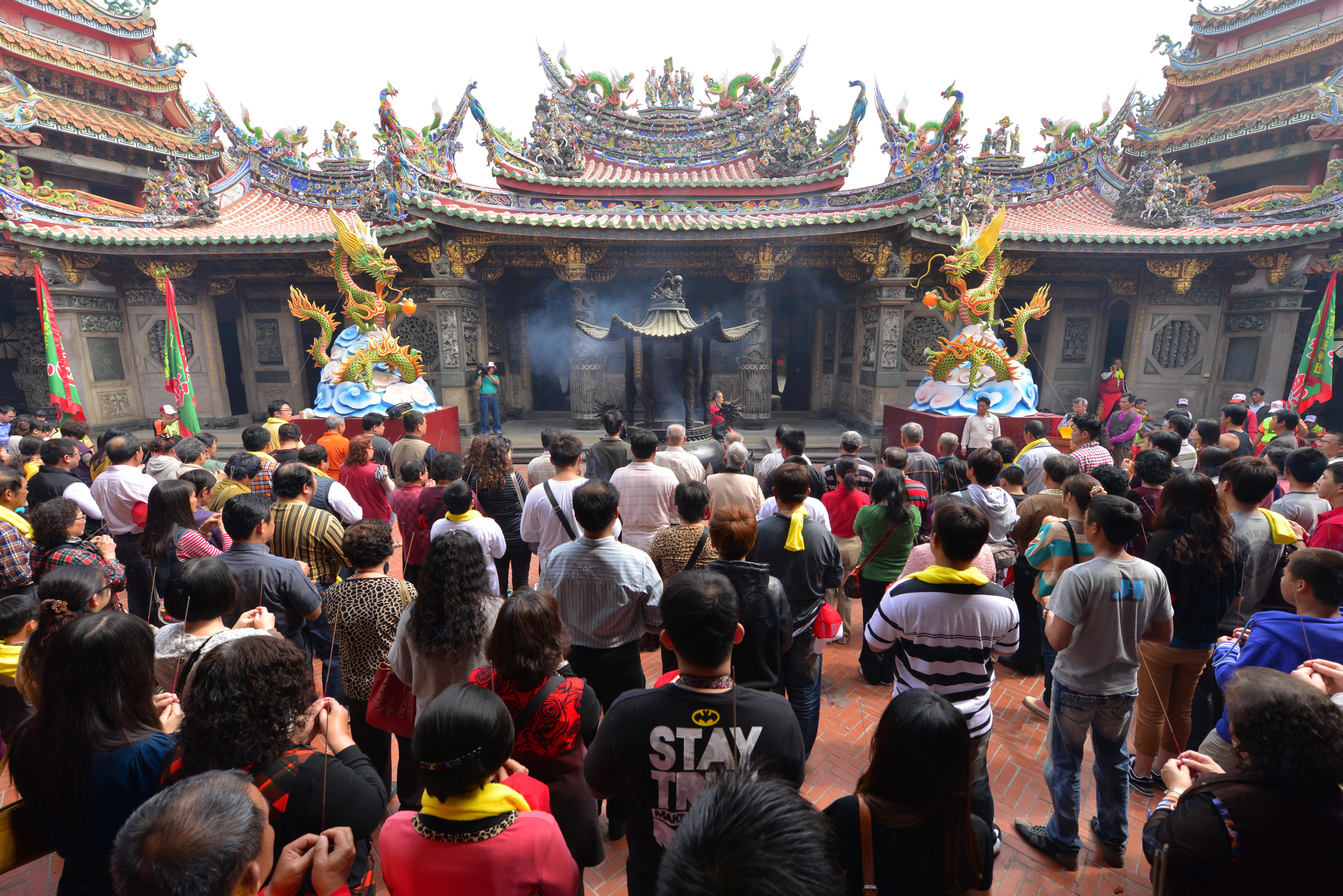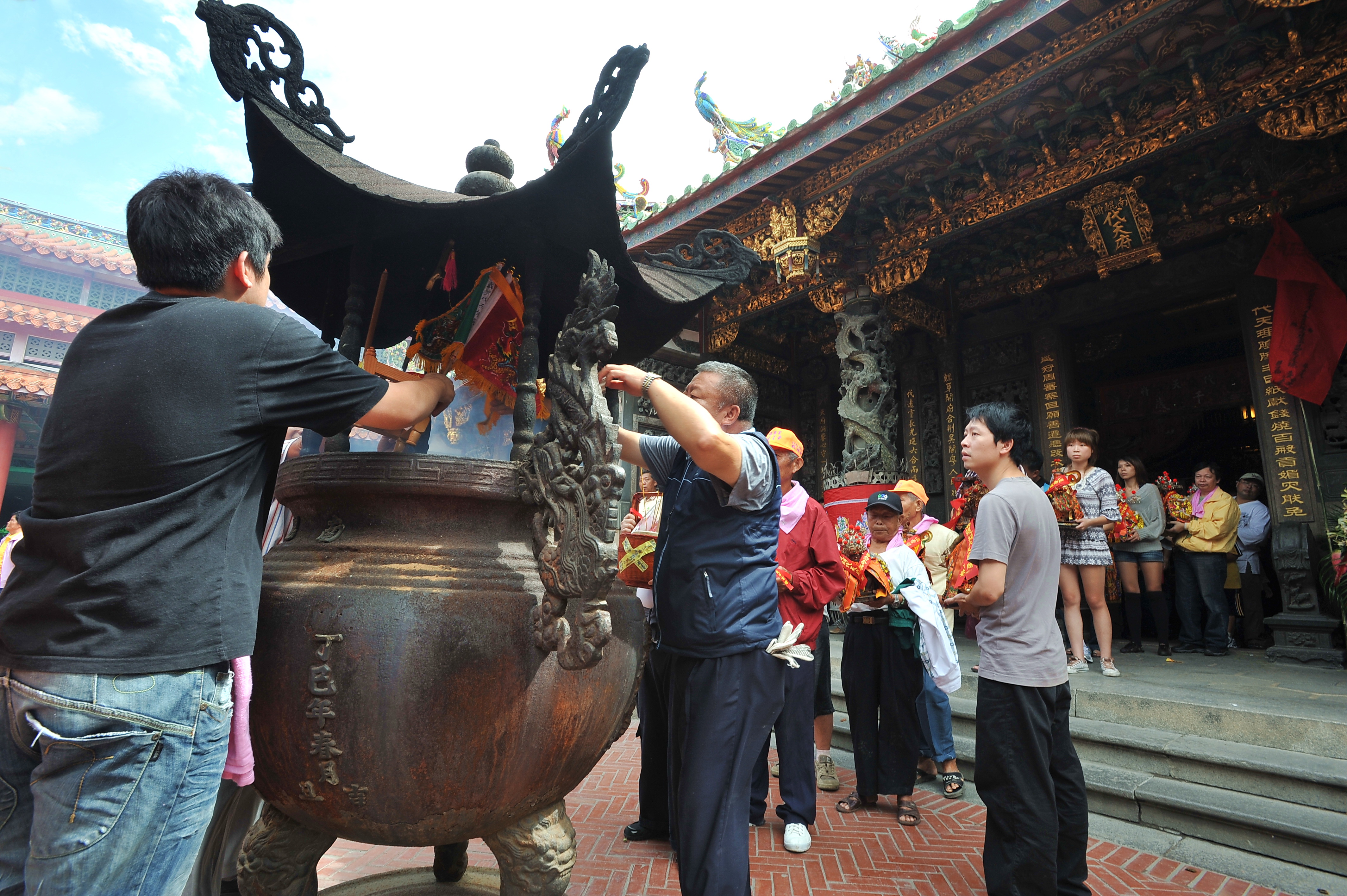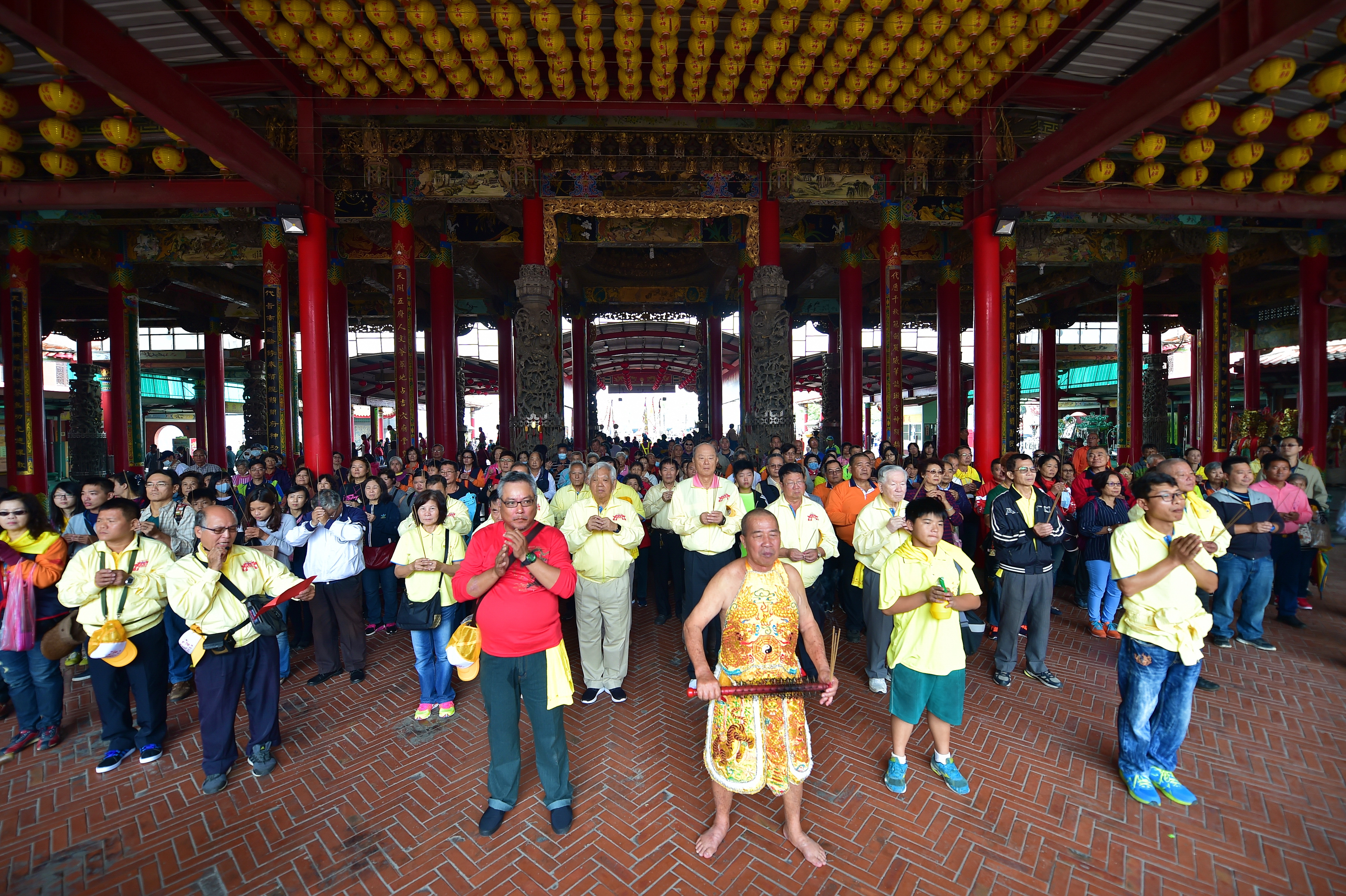 集體團拜,繁簡不一,大者設壇讀疏行三獻九叩首禮,小者行三鞠躬禮。
