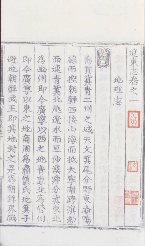 明嘉靖丁酉(十六年,1537)遼東都司刊本。 遼東為東北重鎮,明永樂初搜輯遺稿,始有此志,事蹟雖具,而采錄未備,其後更於累歲,因其舊而增其新,正其訛而補其闕,卒成於眾手。為研究東北史地重要史籍。 明代罕見之版本,具重要歷史、文化與學術價值。
