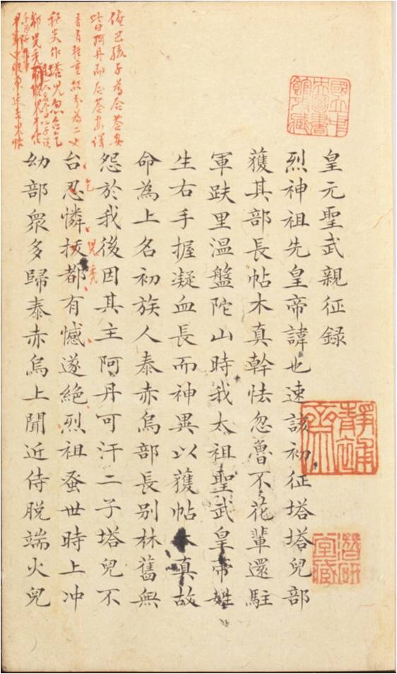 清乾隆間(1736-1795)嘉定錢氏潛研堂鈔本。 此書載元太祖(1206-1228)初起,及太宗(1229-1242)時事。四庫提要稱,以《元史》較之,所記元初諸事實,大概本此書。書中並有清錢大昕朱筆批校。 清代鈔本,罕見稀有,具重要歷史、文化與學術價值。