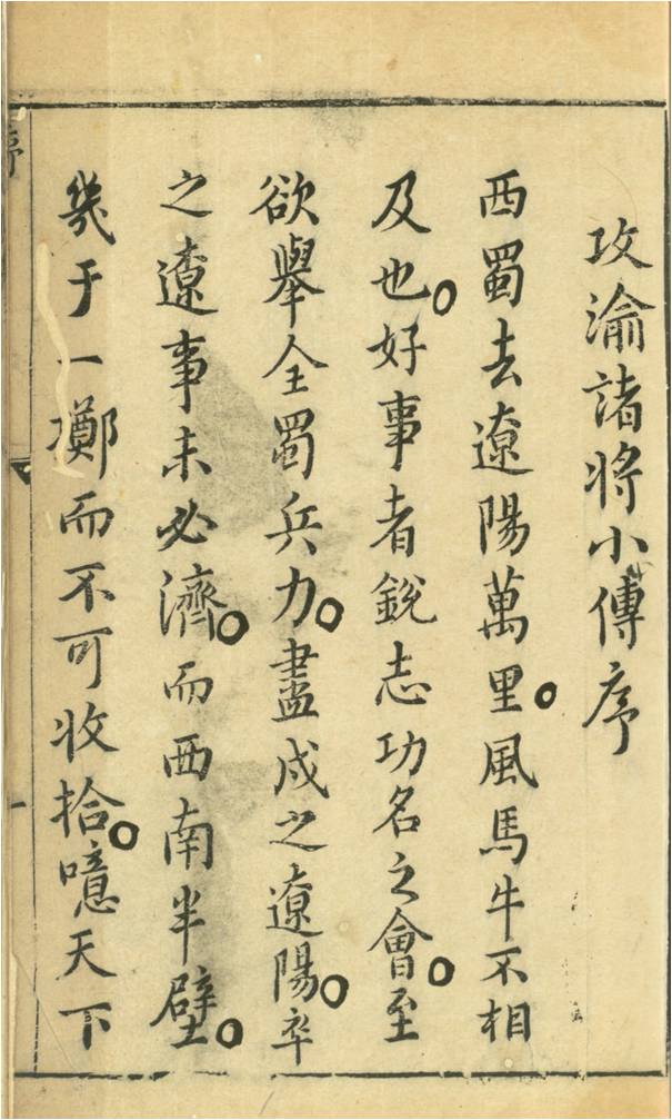 一卷,附西征雜記一卷。 此書目錄後直接接正文,無卷端書名及作者名。 小傳乃為西蜀之變時,攻渝有功諸將立傳。雜記則分紀事、紀夢及碑記三部分。此書為原刊本。