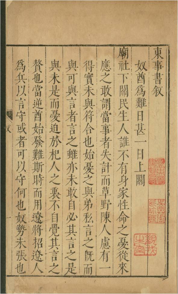 此籌邊書疏,蓋憂懷遼難,始與弟私言之。此書內容有家書五通、與各官書十通、東事疏一通,各信內容皆關於如何處理女真人在東北坐大的問題。可供研究明末邊事者參考。