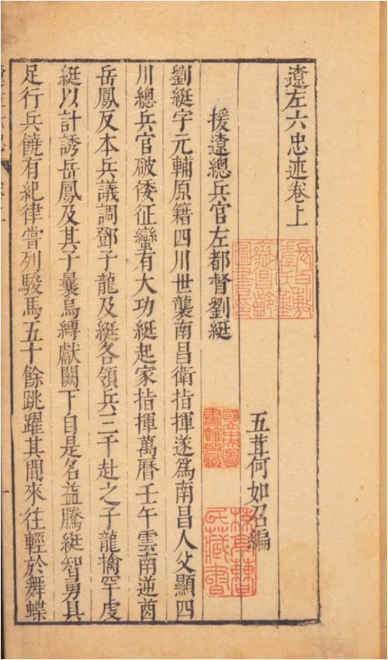 明末刊本。 編者何如召(生卒年不詳),字元奭,雲間人。 明陳繼儒為此書撰序,稱:「遼左之役,徵師轉餉幾突天下,巧將逃卒皆得生,而六君子獨死。士大夫橫議空談,或責其輕進,而六君子有口莫辨,非何元奭如椽之筆,表章而發皇之,六君子死而足矣。」六君子者,指劉綎、杜松、張銓、何廷魁、高邦佐、張神武六人。 明代罕見之版本,具重要歷史、文化與學術價值。