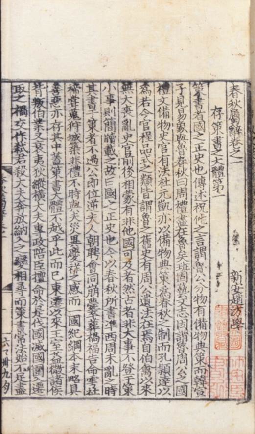 元末商山義塾刊本。 編者趙汸(1319-1369),字子常,休寧人。師事黃澤,受易象春秋之學。隱居著述,作東山精舍以奉母,學者稱東山先生。 著者因《禮記》經解之語,悟春秋之意在於比事屬辭,復推筆削之旨,定著此書,殫精畢慮,凡二十年始成。 元版古籍,罕見稀有,具重要歷史、文化與學術價值。