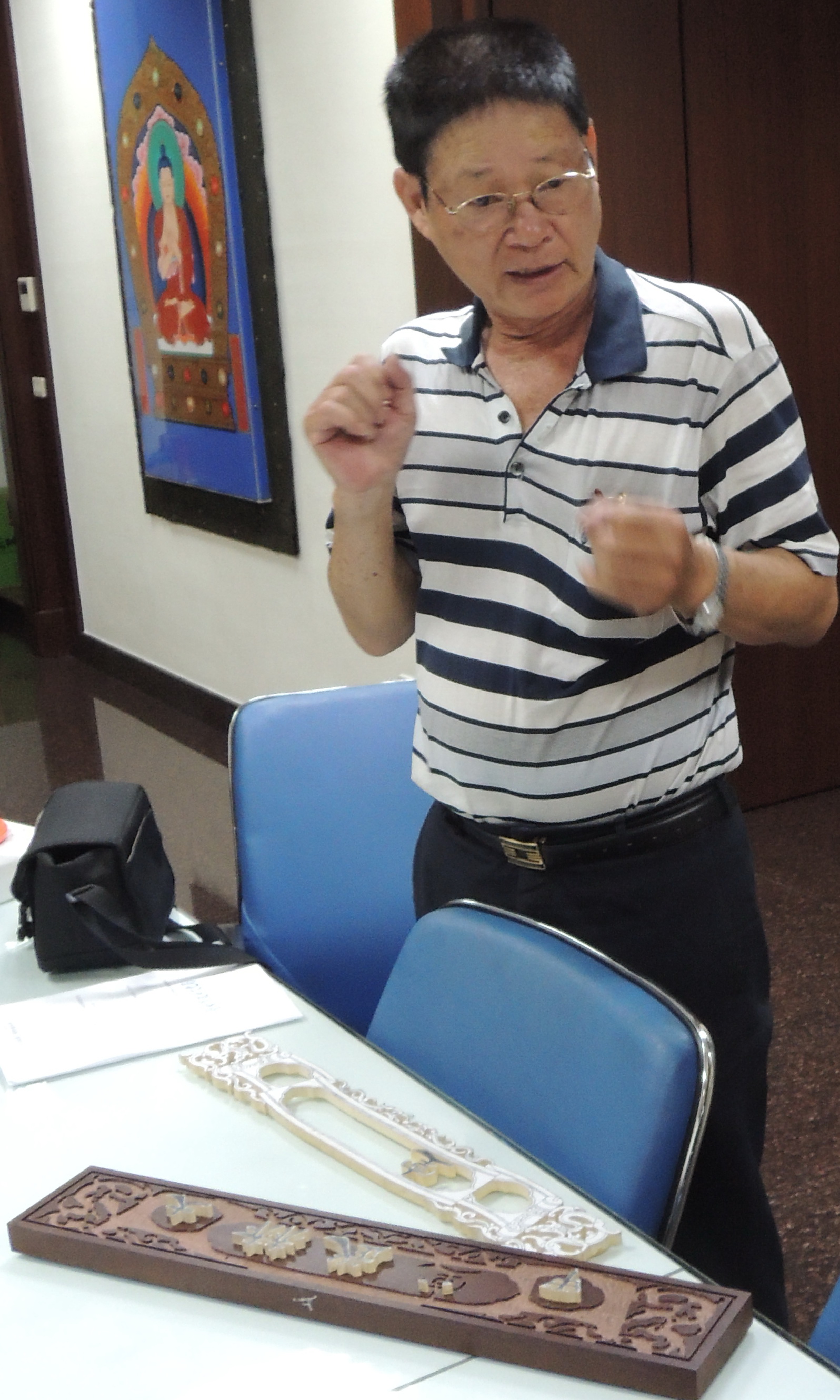1、手繪雕刻畫稿配合傳統民俗故事,人物姿態動作內外玲瓏,山水樓臺構圖場景漸層,配合鑿花與小木作鑲嵌技術表現精湛,成品藝術價值高。 2、身兼畫稿及雕鑿鑲嵌多樣技法,畫稿圖樣具獨到手法,鑲嵌技術亦是特殊,擅畫能雕,技法表現極為精彩,具有特殊性。 3、「茄苳入石柳」鑲嵌技術為臺南地區特色技法,成品因而俗稱「臺南體」,藝師承襲此一技藝又具有畫稿之能力,足為臺南地區鑲嵌小木領域之流派代表。