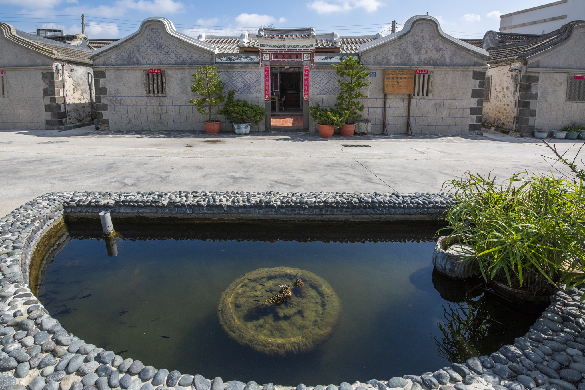 1.建築坐北朝南,以硓𥑮石為主建材,厝角、過路、門豎佐以矩形玄武岩加強力學結構,深井上方並設有磚坪頂作為收獲曝曬場域,為澎南漁村傳統民家建築典型風格。 2.本建構融合傳統格局與日治時期水泥工法,門樓以細膩雕的泥塑雕花與洗石子浮雕裝飾及玄武岩石材構築,樸實中可見漢、和建築文化技術交融。 3.裝飾水泥雕窗、門柱、堂號門匾富藝術特色。 4.外牆的四個牆角均有澎湖傳統民宅的「吐交丁」砌法,以增強其結構的穩固性。