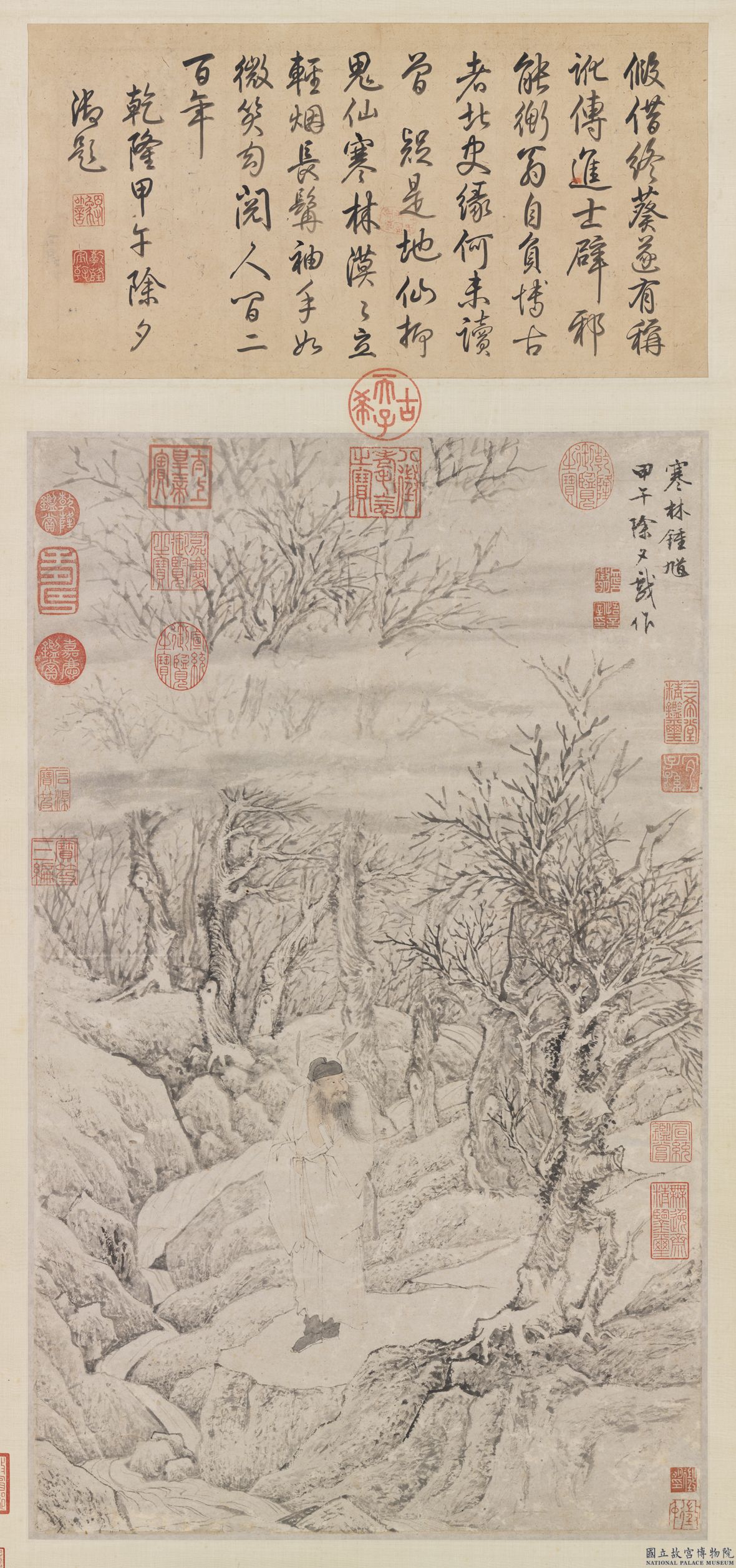 幅中鍾馗的俊朗文士丰神,屬明代文人畫家如文徵明、錢穀等多以笏板取代寶劍,後演變成「文相鍾馗」的形式。寒林筆法與其〈空林覓句圖〉相類,雖有些學者指出畫中人物或非文氏所為。不過,文氏擅長各家筆法,此作的用筆十分精采,仍有可能出自文徵明之手。畫中人與景均氣勢不凡,雖自題除夕戲作,實為其傳世極少人物畫中的精品。