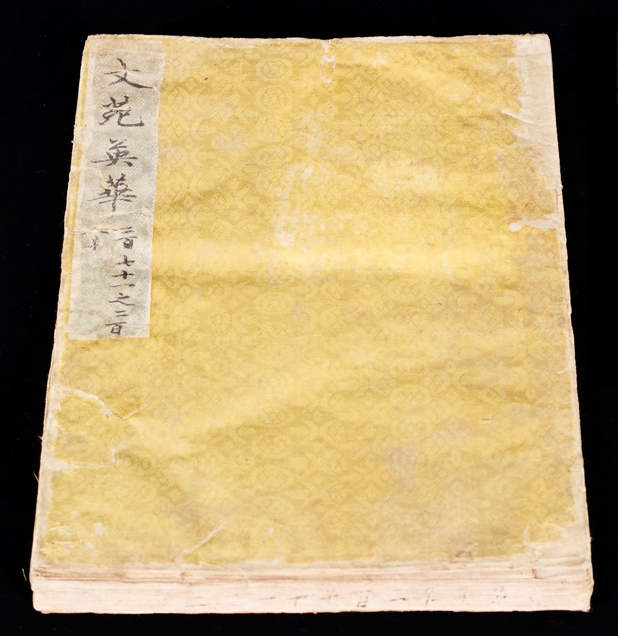 本書為南宋嘉泰二年至四年(1202-1204)周必大刊本。宋印宋裝,黃綾書衣、蝴蝶裝,珍稀罕見。 《文苑英華》原有千卷,現海內外僅存150卷15冊,均為同部書所散出。本書一冊十卷(卷271- 280),書末傅增湘跋云:「宋刊《文苑英華》自二百七十一卷起,至二百八十卷止,凡十卷,共一百葉。取隆慶刻本對校,凡補正一千一百八十一字」,有其校勘價值。具有重要歷史、文化及學術價值。