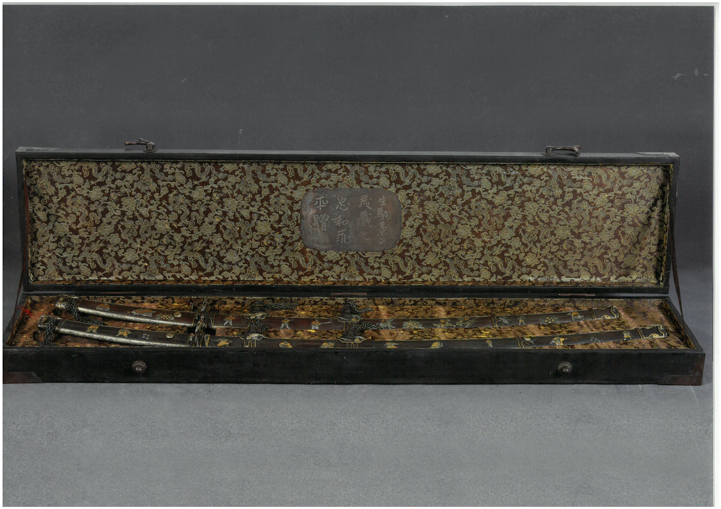 據擁有人陳蒼興口述,此筆武士刀文資,源自民國34年(西元1945年)日軍戰敗並撤離臺灣,數位日籍軍官身邊均有貴重文物古董,無法攜帶回日本,大致為日製古代文物、紀念性武士刀等,軍官們雖有不捨,最後商議決定贈與服務於日本總督府之洪明山先生。 此件文物,製作工藝相當精緻,大致由金、銀、銅、錫、鋁等多種合金冶製而成,並由精緻收藏錦盒存放,洪明山直到民國65年(西元1976年),因行動不便才交於洪植一,後因其後代子孫無興趣收藏,讓渡於目前所有人陳蒼興。