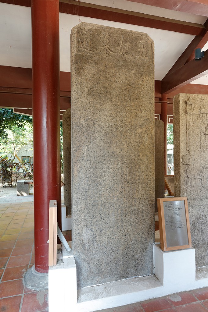 數量:1組1件。 主要材質:花崗岩。 尺寸:縱234公分*橫88公分*厚12公分。 特徵:全碑無紋飾,額刻「五妃墓道」四字。