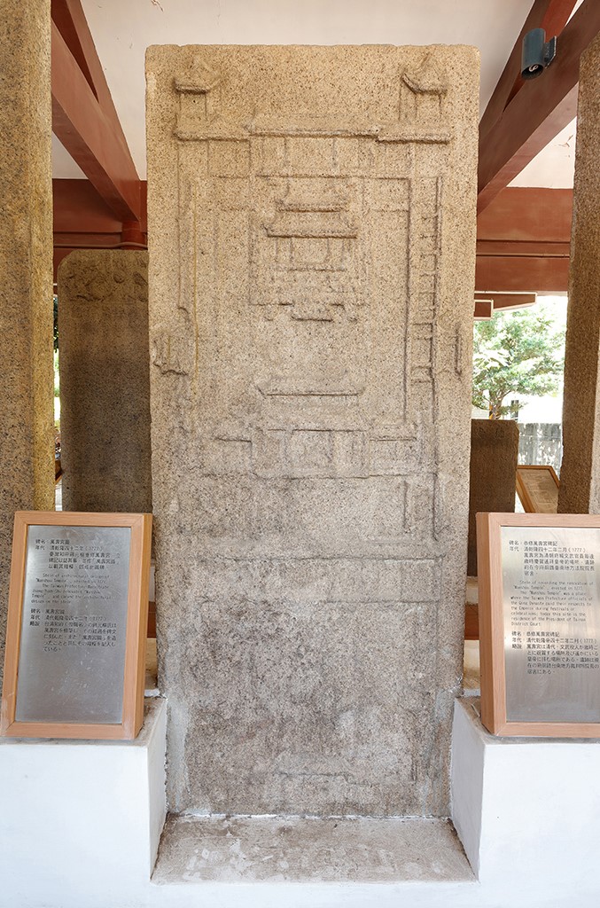 本組古物原1組2件,本次新增「恭修萬壽宮碑記碑額」,與原「恭修萬壽宮碑記」、「萬壽宮圖碑」合計1組3件。 1、年代:乾隆四十二年(西元1777年)。 2、作者:蔣元樞 撰文 3、材質:石質 4、技法:石刻 5、尺寸:(1)「恭修萬壽宮碑記」(縱194*橫78*厚12公分) (2) 「萬壽宮圖」碑(縱186*橫79*厚12公分)