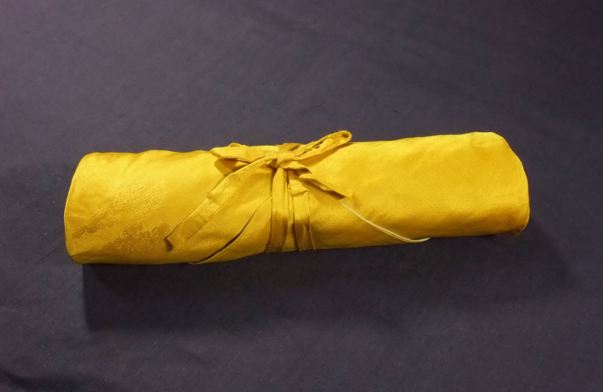 奏摺:縱17.5 公分,橫599.5 公分;黃綢包袱:縱33公分,橫33公分