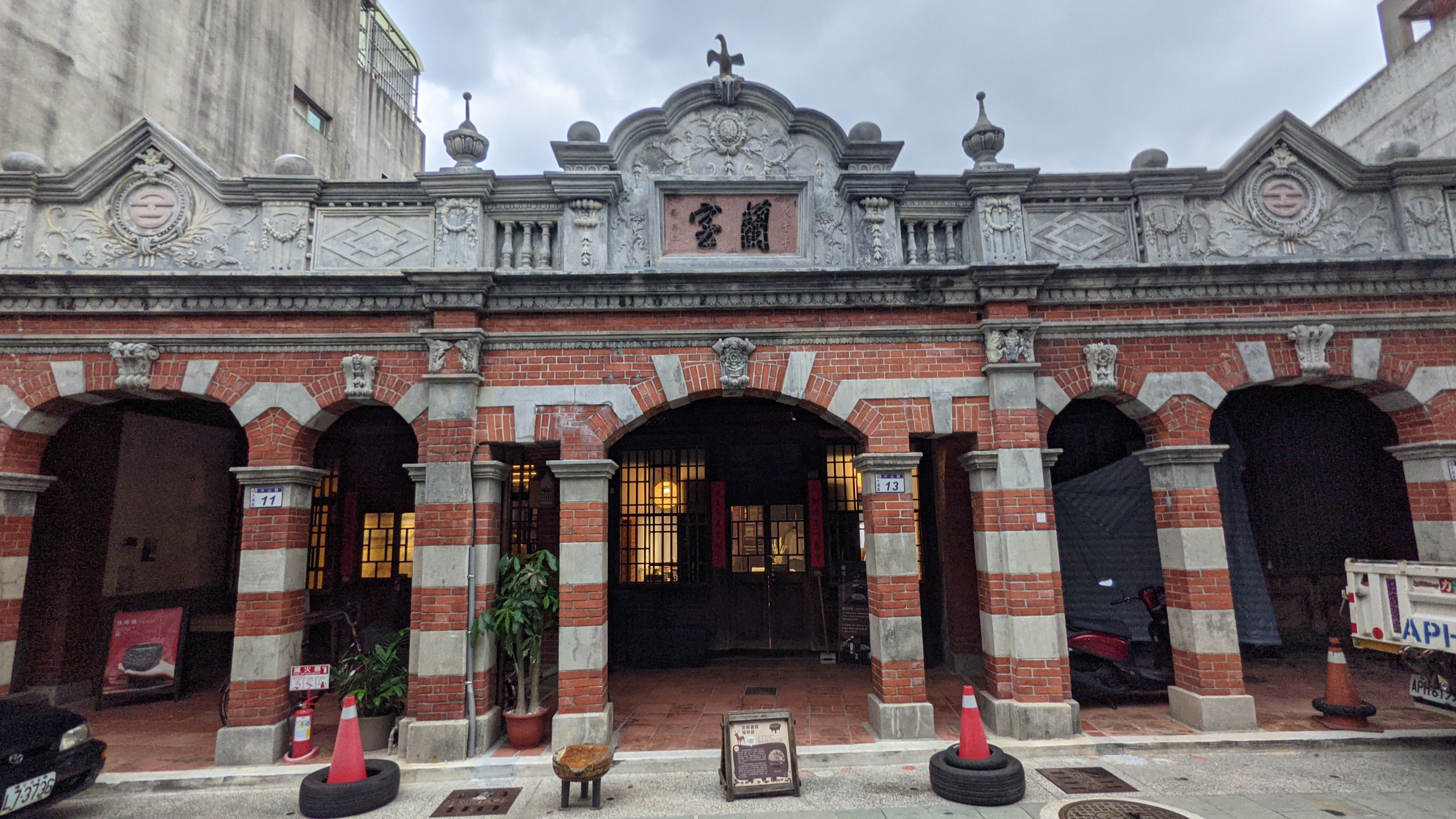 「蘭室」為三坎兩落兩過水一後院格局,牌樓面為紅白橫條帶飾的「辰野式」風格搭配洗石子花飾,建築融合有閩南、西洋古典樣式,中庭為捲棚屋頂,木雕精美,表現出屋主對傳統與現代兼具的生活美感。