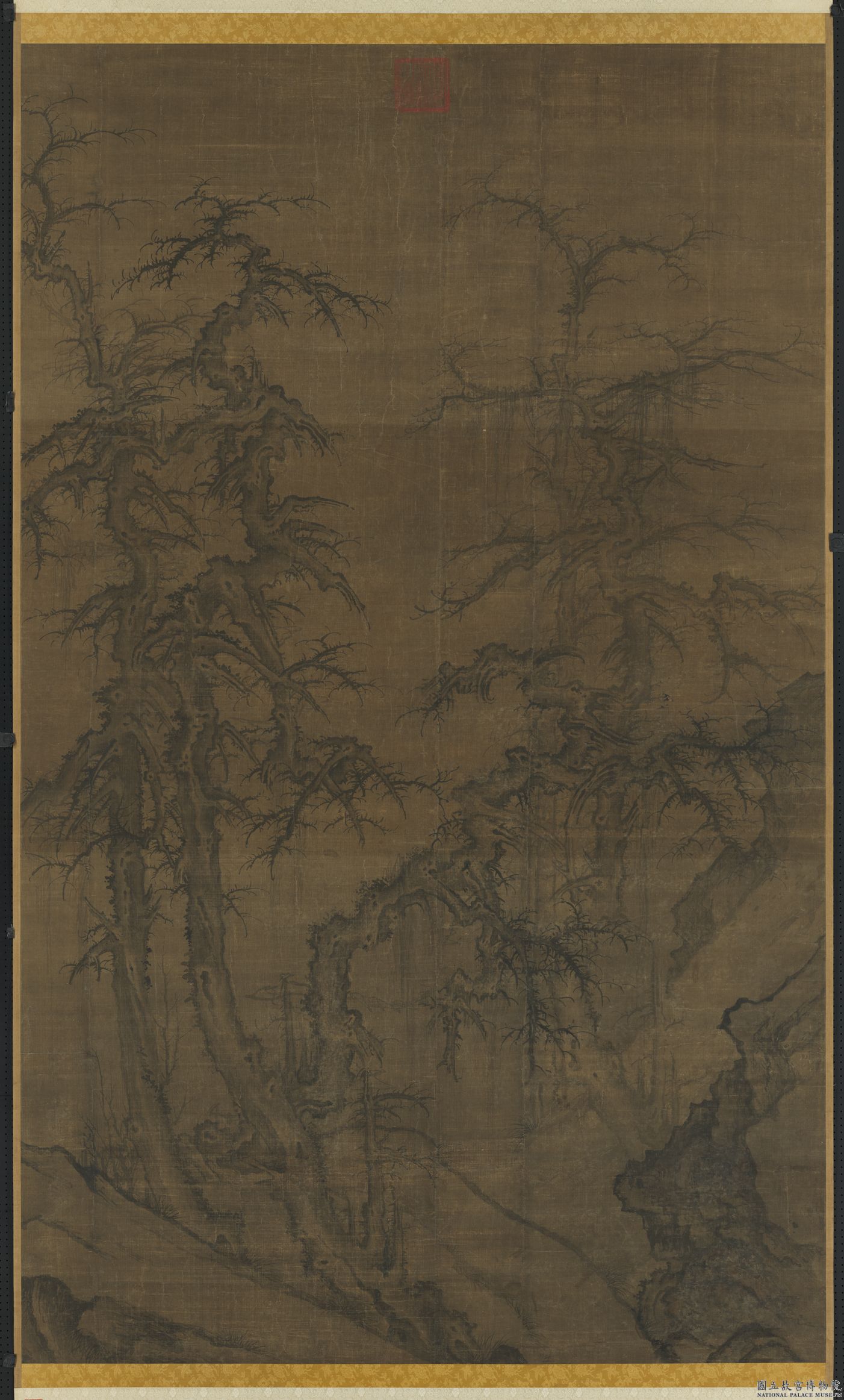 本幅畫老樹幾株,聚生於陡峭坡石間。樹木老枝伸展怒張如蟹爪,新枝則溫文挺立,雖僅用水墨濃淡深淺的技法,層次感運用極佳,變化微妙,全幅似籠罩於煙嵐中。樹後於朦朧中,如有無盡的景色掩映其間;命名徐道寧,歲不確定,實為受李成(916-967)、郭熙(11世紀)一派「寒林平遠」影響的宋代作品,其表現北國的寒中之健的風格,傳世畫中難得一見。傳世李郭畫派之宋代作品數量稀少,此幅繪製精良,且為雙縑拼成巨幅,真為難得的傳世精品。