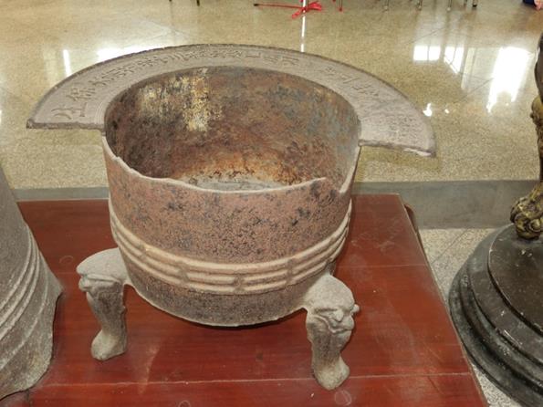 1. 八卦紋鉎鐵爐,形狀為盤口、筒腹、三足,筒腹圍繞一周八卦紋,三足皆作螭虎吞腳;此等工藝技術不僅保存了清代工藝技術,更可看出廟宇在當時有一定的規模,具藝術及歷史價值。 2. 推知為清時期宮內燒金紙、疏文的器具,得見金爐的演變史,具有文化價值。