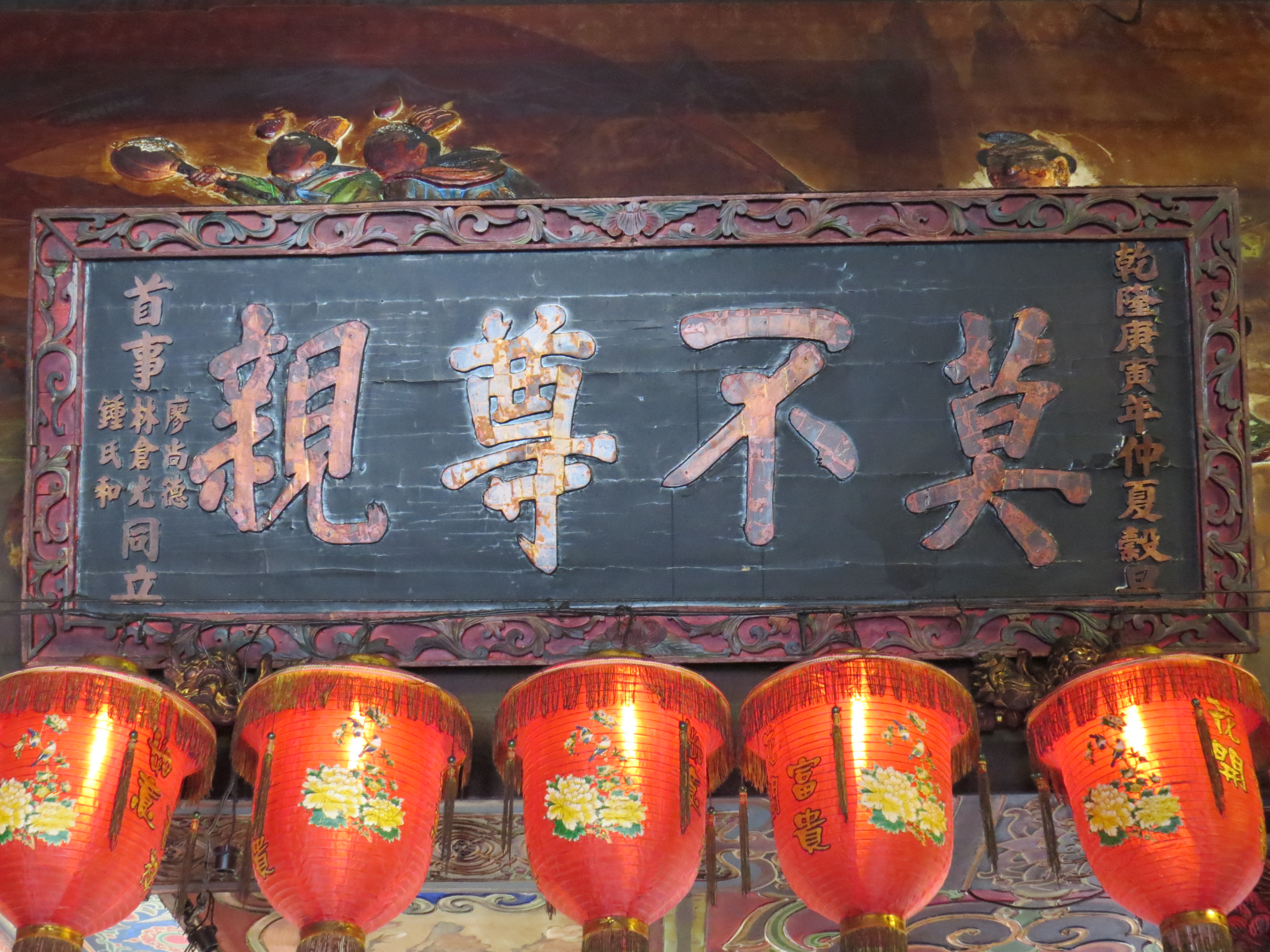 本件為橫長方形木匾,以多塊木板拼接製成,邊框為紅底纏枝卷草紋,匾面為黑底金字,字樣為陽刻金字楷書,上款「乾隆庚寅年仲夏穀旦」、中行「莫不尊親」、下款「首事林倉光、廖尚德、鍾氏和同立」。此匾保留著清領時期匾額製作工藝,中行「莫不尊親」為片狀陽文,係另外製作後接合於額面上,並以金屬釘固定在匾額板面上。