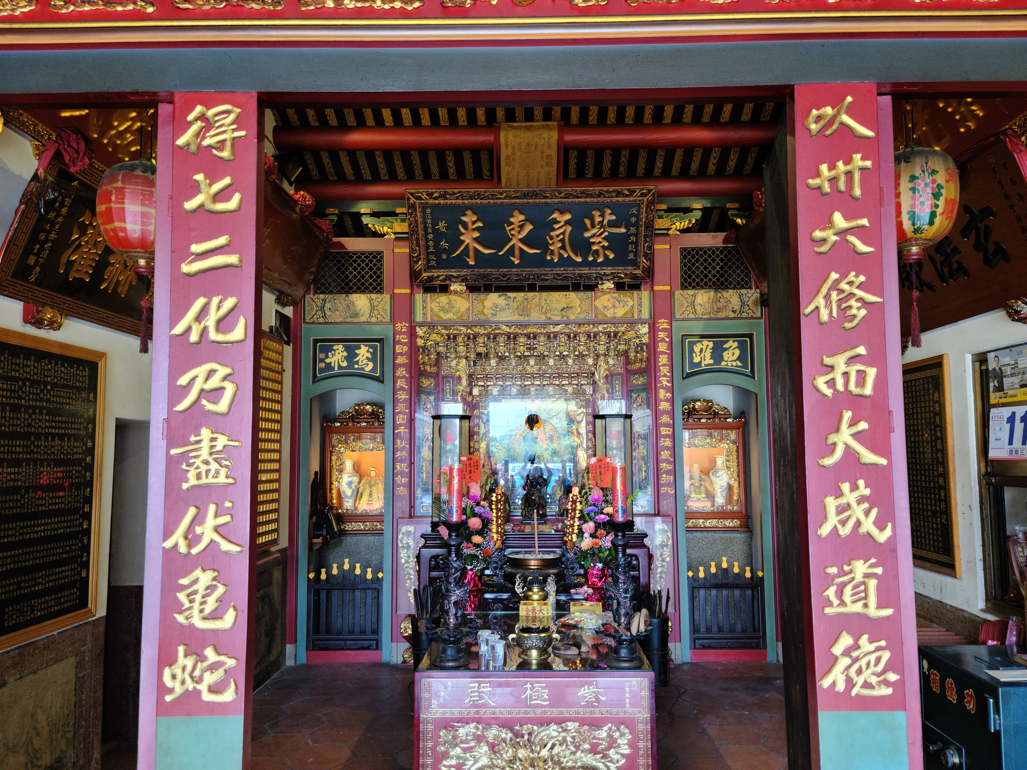 黃天素楷書楹聯係與門神彩繪同為廟門構件,為鹿港書法家黃天素的作品,具有其時代及在地地方特色與藝術造詣。