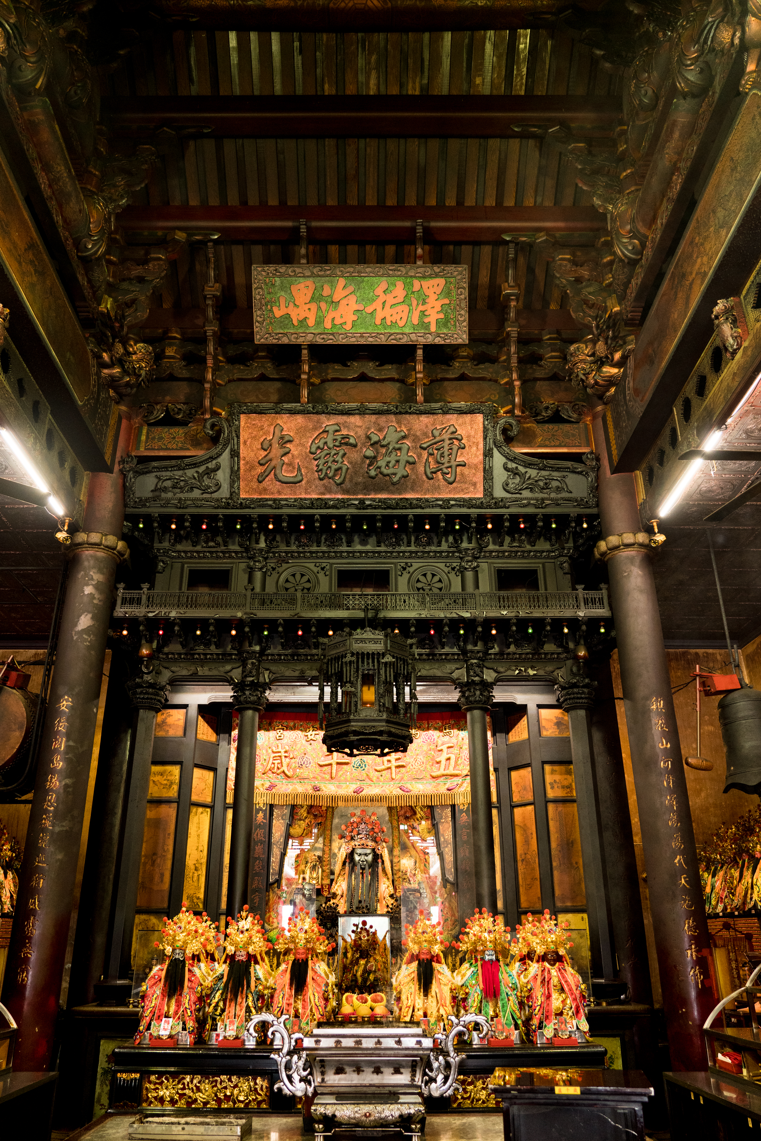 神龕虎邊有電源,應注意電路安全。 木構件表面髹漆亦屬完整,推測採用生漆塗裝,至今僅見油煙沉、汙塵、灰塵積覆蓋,並無其他材料裂化問題。 本神龕位於屏風區域所藏之紙本水墨畫為陳玉峰所親筆繪之,並印有豐富之落款,經由廟方出資研究可知因有機材料之紙本受到環境影響與質變,陳玉峰畫作紙本受損狀況不良,應進行盡快文物保護處理。 玻璃彩繪表面所附著的灰塵、汙漬,彩繪層,存在著煙害、裂痕等劣化問題,其問題已經造成其外觀上藝術價值的損失,雖已於2016年暫時緊急加固修護,但目前保存狀況仍屬不良,應進行盡快文物保護處理。